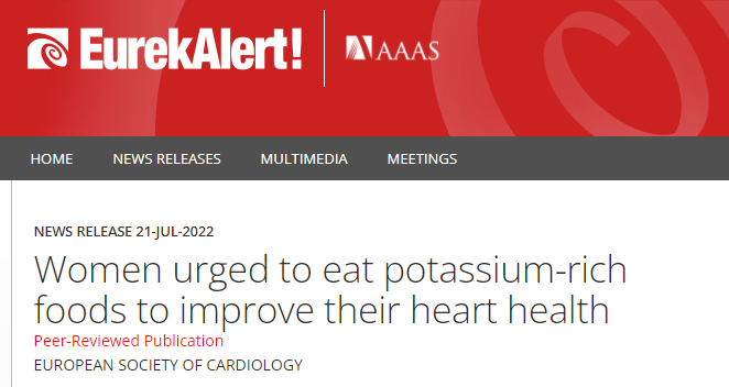 7月22日《欧洲心脏杂志》刊发了一项关于“多吃富含钾的食物以改善心脏健康”的研究论文。研究显示,多吃富含钾的食物,可预防心脏病。①