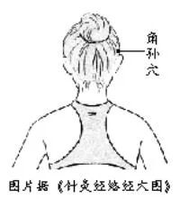角孙穴:食、中指叠按头部两侧角孙穴(耳翼折向前,耳尖所指发际处)3~5分钟,由轻到重,有助清热解毒,缓解偏头痛等症。