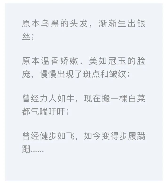 每一个人都会走向衰老,这是必然之路,谁也无法逃避。