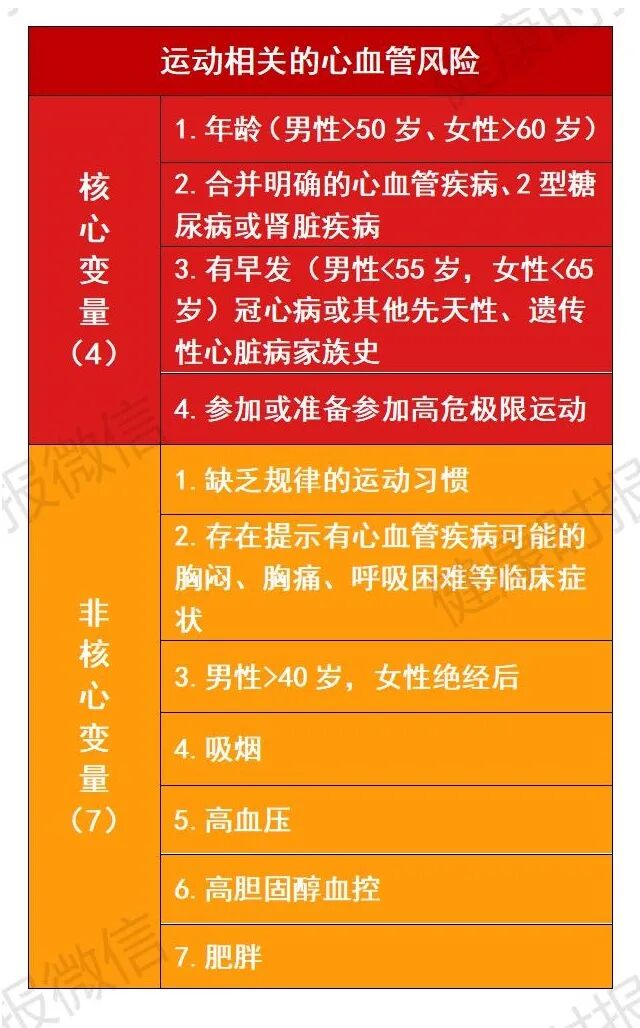 2022年,北京医院心内科主任汪芳教授牵头发布了《运动相关心血管事件风险的评估与监测中国专家共识》,从专业角度提出防控运动相关心血管意外的建议。共识对于初始运动、新发症状、拟提升运动强度的人,推荐进行心血管危险分层及进入相应的评估流程。③