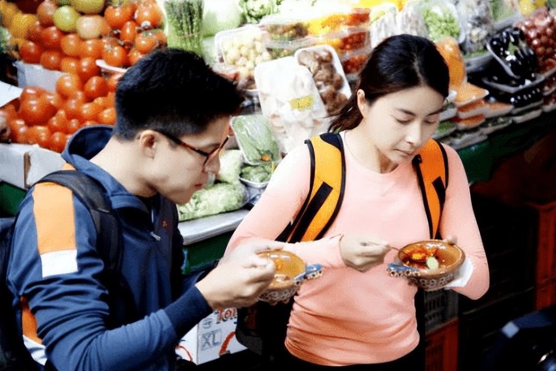 结果两人照样穿着舒适的运动服站在街头,认真的吃着手里的美餐,这样的画面不比哪个明星离婚、出轨、搞暧昧温馨多了吗?
