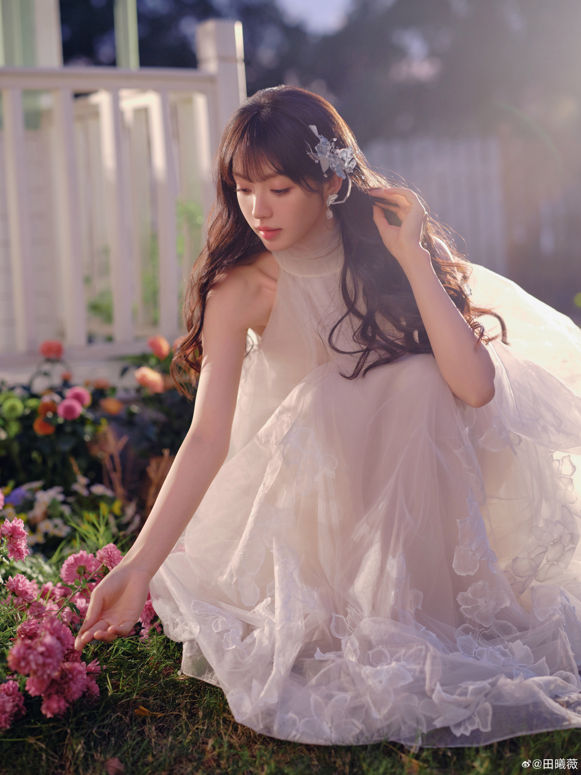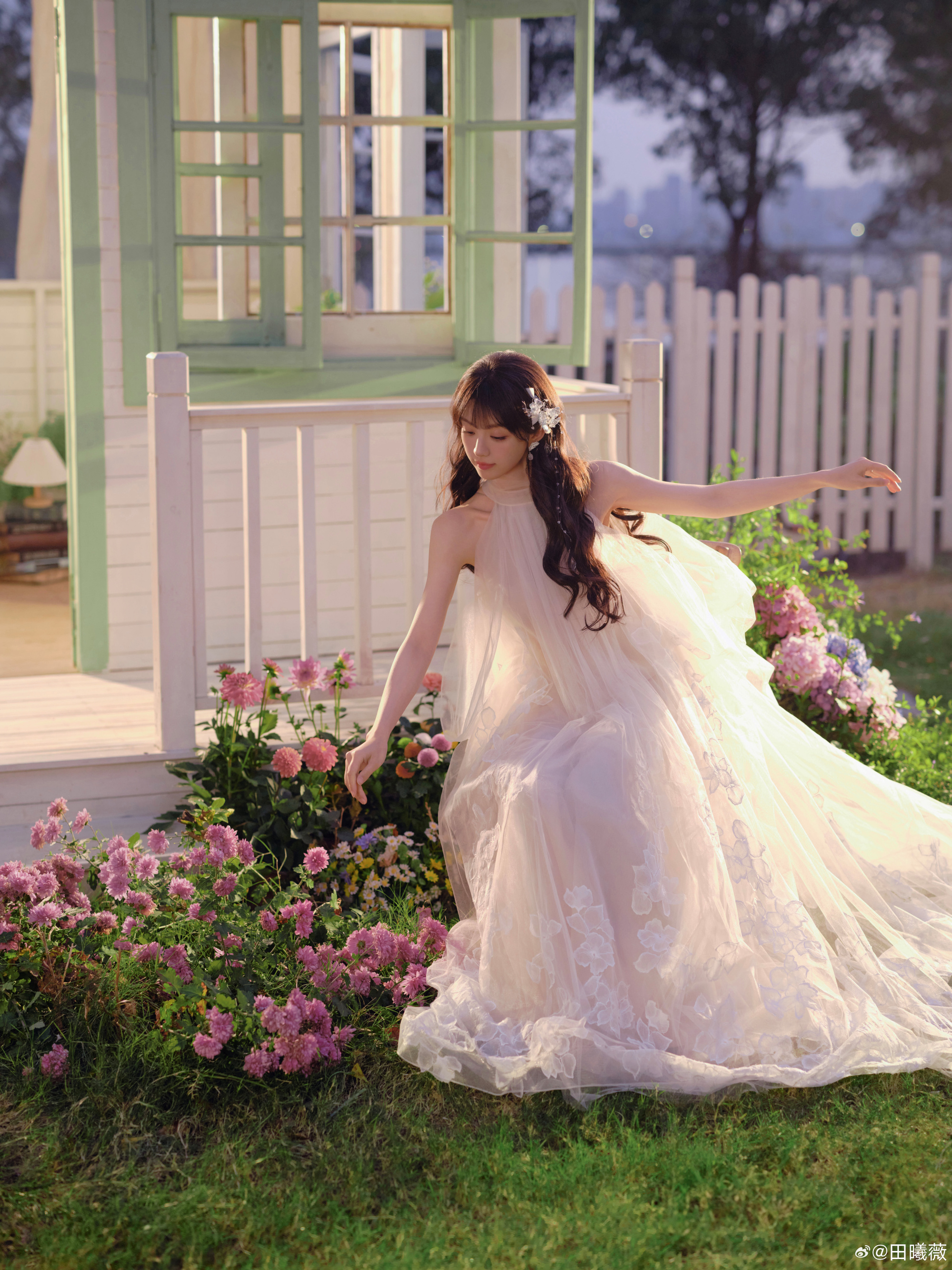27岁田曦薇轻纱裙勾勒曲线,华丽风穿搭尽显优雅魅力