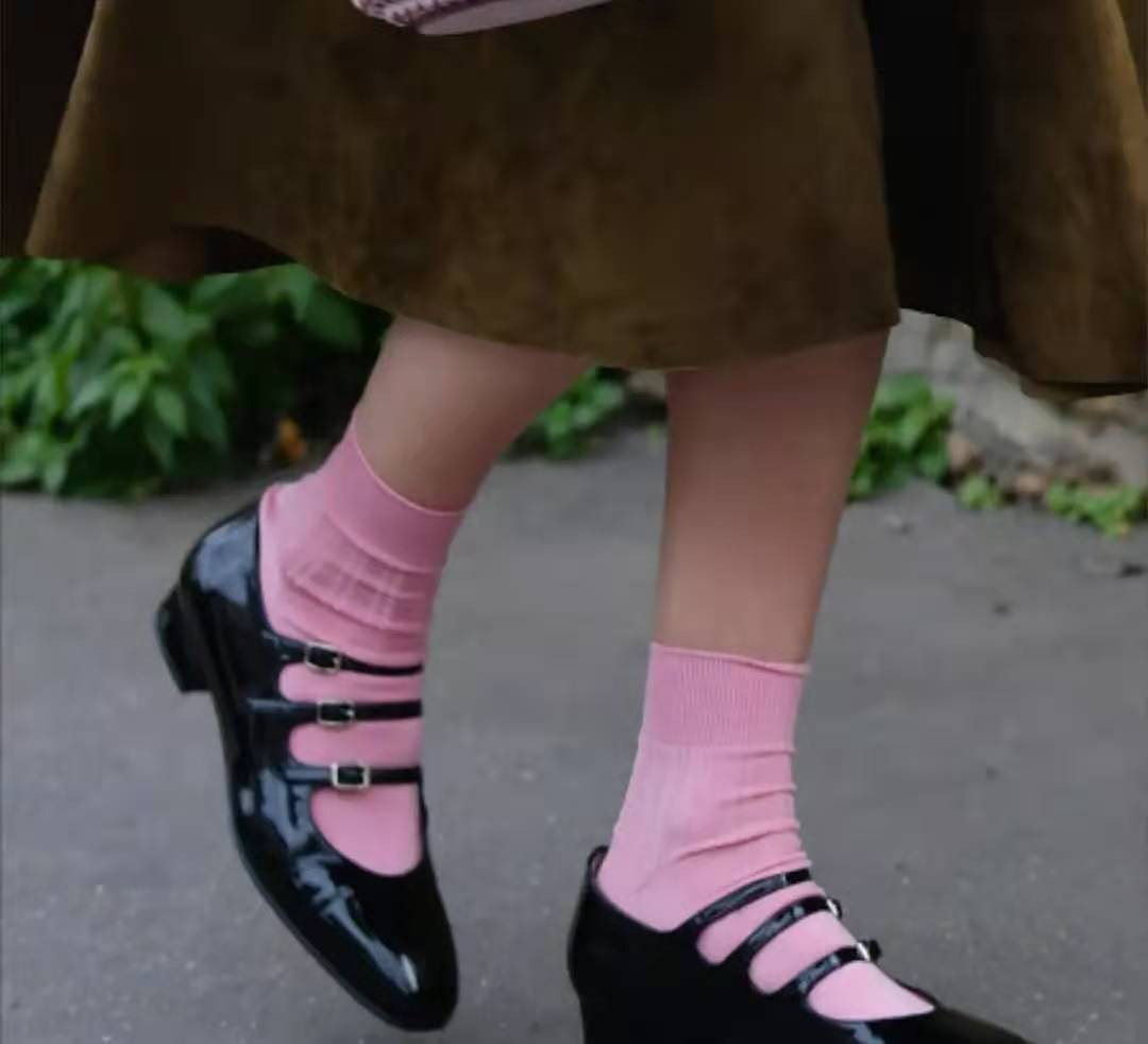 显气质是玛丽珍鞋最大魅力,除此之外,玛丽珍鞋因外形类似童鞋,有着不错的减龄效果,上脚效果非常显年轻。不过,玛丽珍鞋的鞋跟分为平跟、中跟、高跟三种,不建议大家选择低跟玛丽珍鞋,显矮不说还显脚胖。
