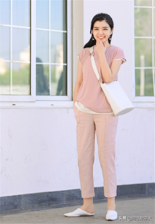 其实裸粉色是很温柔的色彩,粉色包含的色彩很多,芭比粉色,玫粉色都是很时髦的配色,但是由于饱和度很高,所以会觉得俗气,搭配起来容易显得廉价。如果你想要显得更加高级,那么裸粉色是最不出错的,裸粉色看起来很简约,温柔的浅色系搭配也能够提升你的搭配能力。