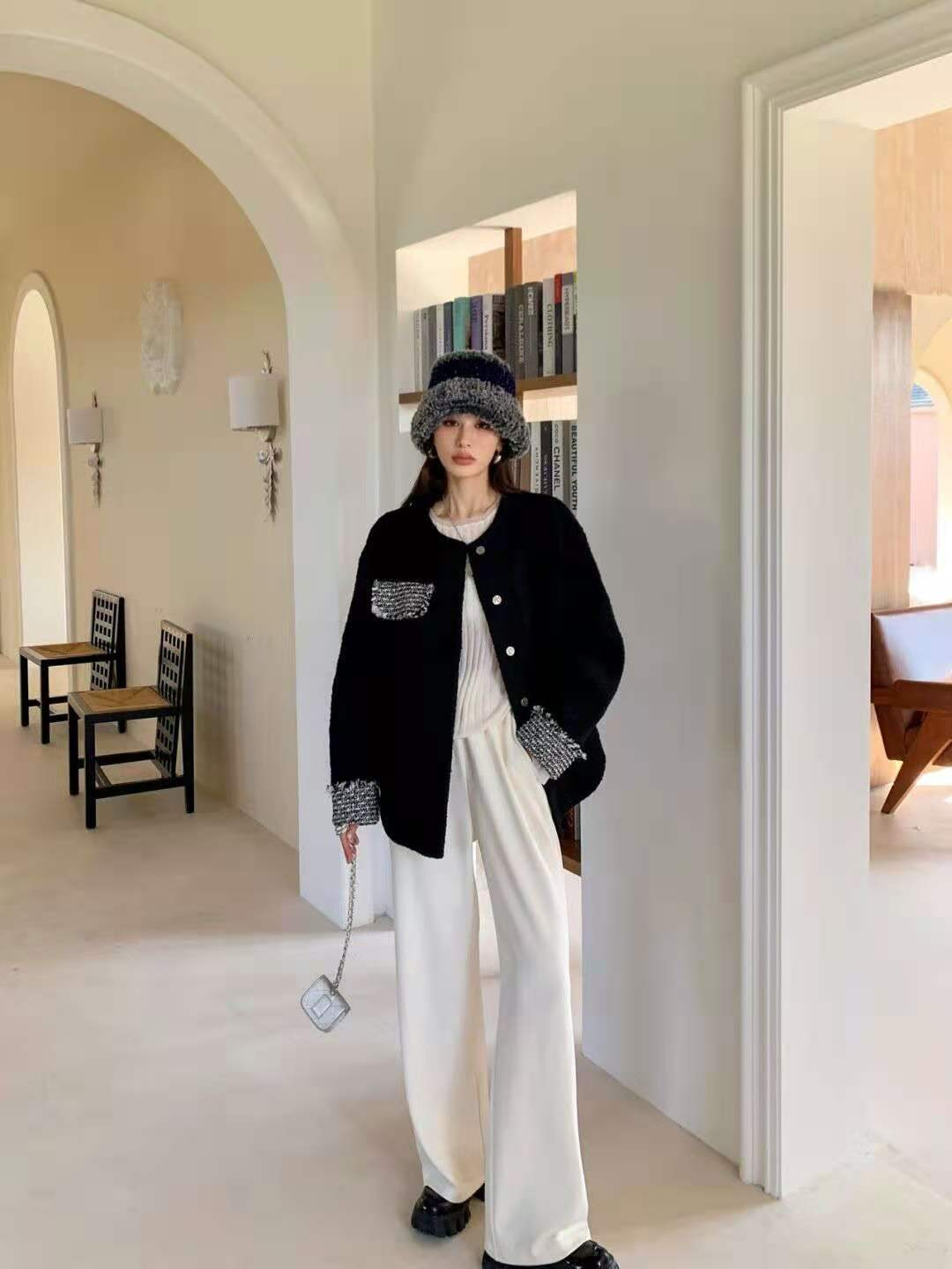 冬天穿白裤子显胖吗 白裤子搭什么上衣最好看 大衣配羽绒都不错(4)