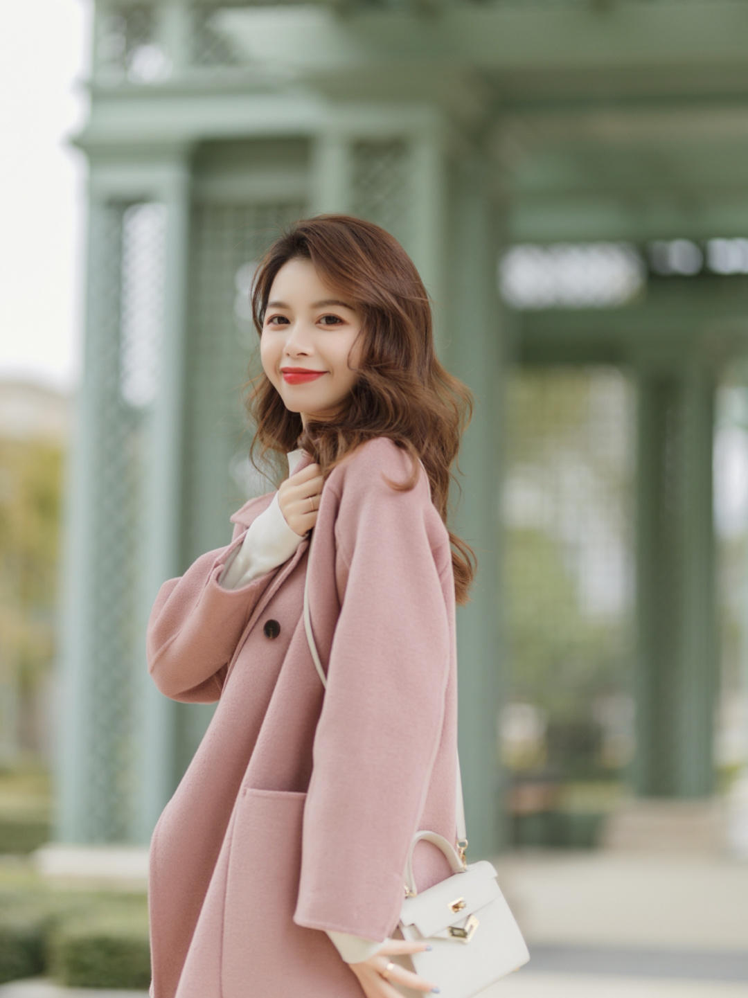 博主为自己搭配了一条毛衣裙作为内搭,它呈现白色,与粉色结合后碰撞出了很可爱甜美的感觉,但因为粉色属于高级的莫兰迪粉,所以不会给人太甜腻的感觉,值得中年女性借鉴,展现减龄感的同时不会给人刻意扮嫩的嫌疑。