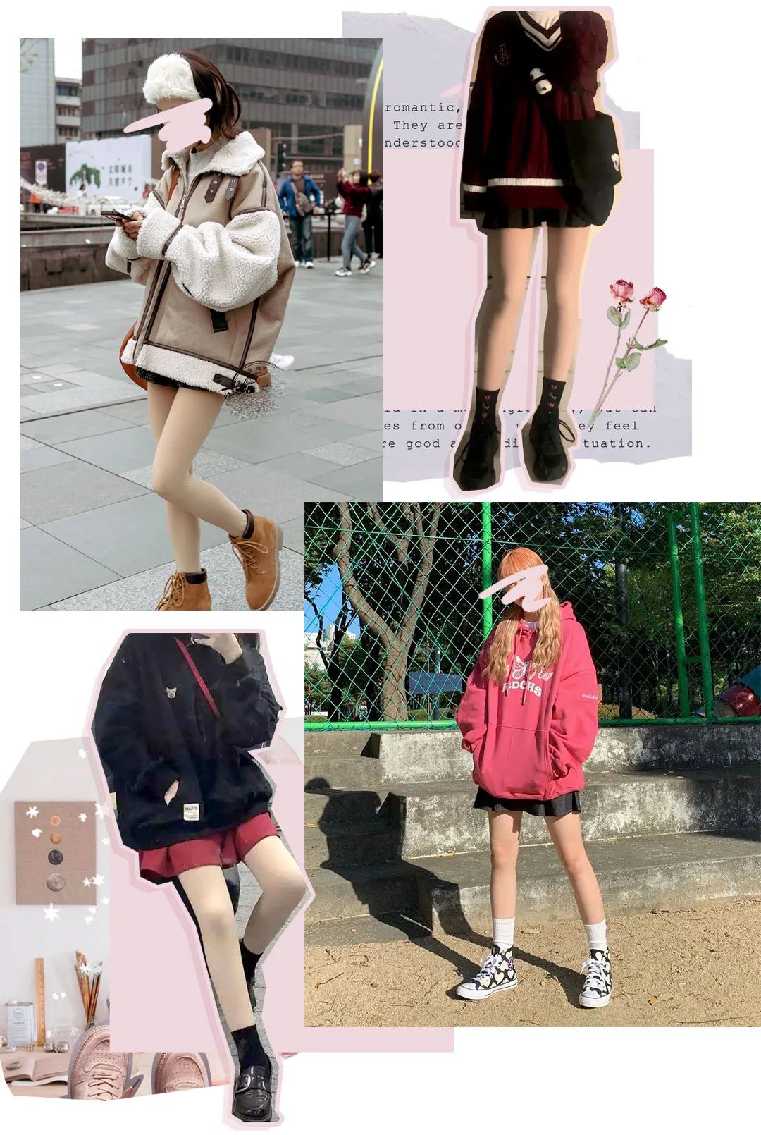 搭配短裙、小皮靴、牛津鞋再露出一截短短的袜子简直就是乖巧小可爱本爱了!