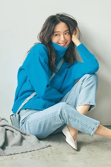 蓝毛衣对于修正肤色明显,完全不挑人的。在选择款式上,V领和高领能修饰脖子和脸型,单穿或内搭都是温柔提亮的绝佳单品。