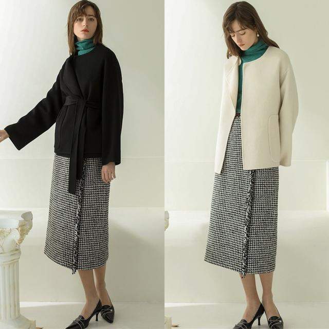 设计感的外套与高领打底相结合,整体既简约又具备了设计感,穿起来时髦大方,打破了小个子女生“穿得可爱”的刻板印象。