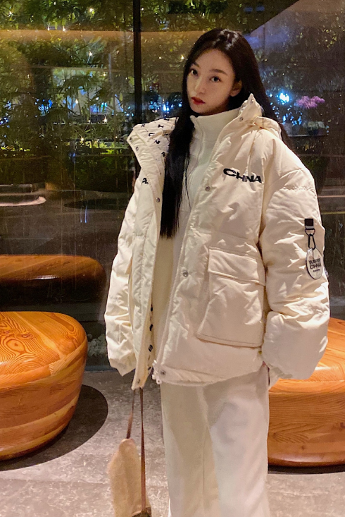 羽绒服的蓬松感就在于服饰的缝线,缝线大的衣服蓬松感就比较突出,廓形不会很板正,所以比较时尚。