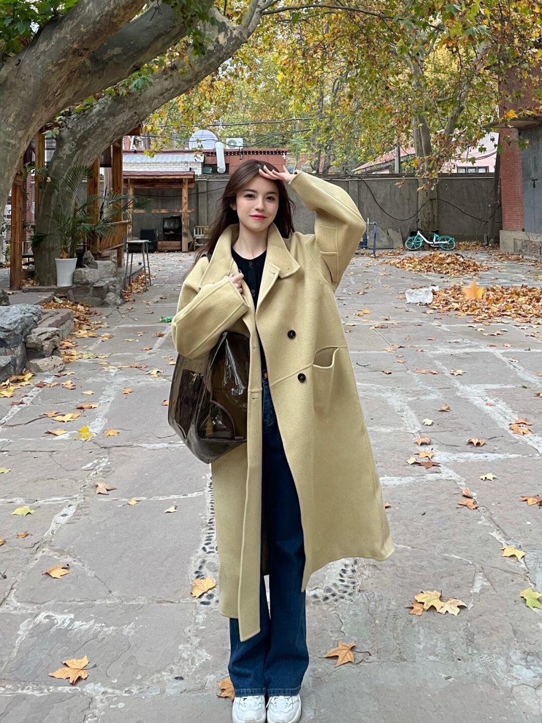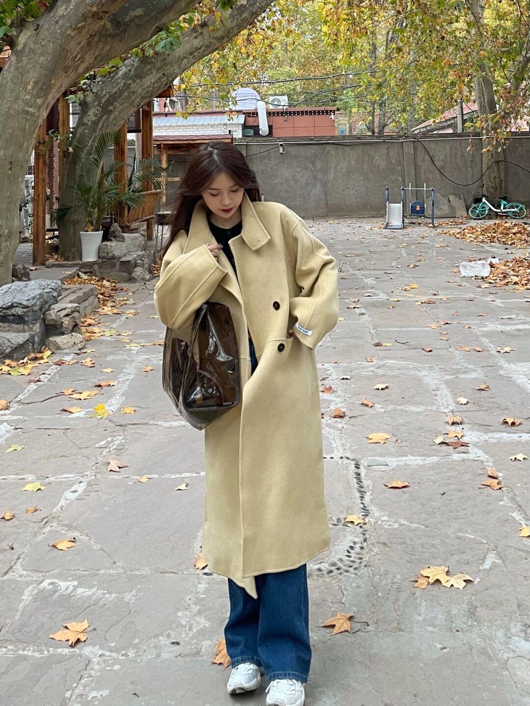 长款大衣搭配什么裤子好看 这四件大衣 配上阔腿裤牛仔裤很高级!(3)