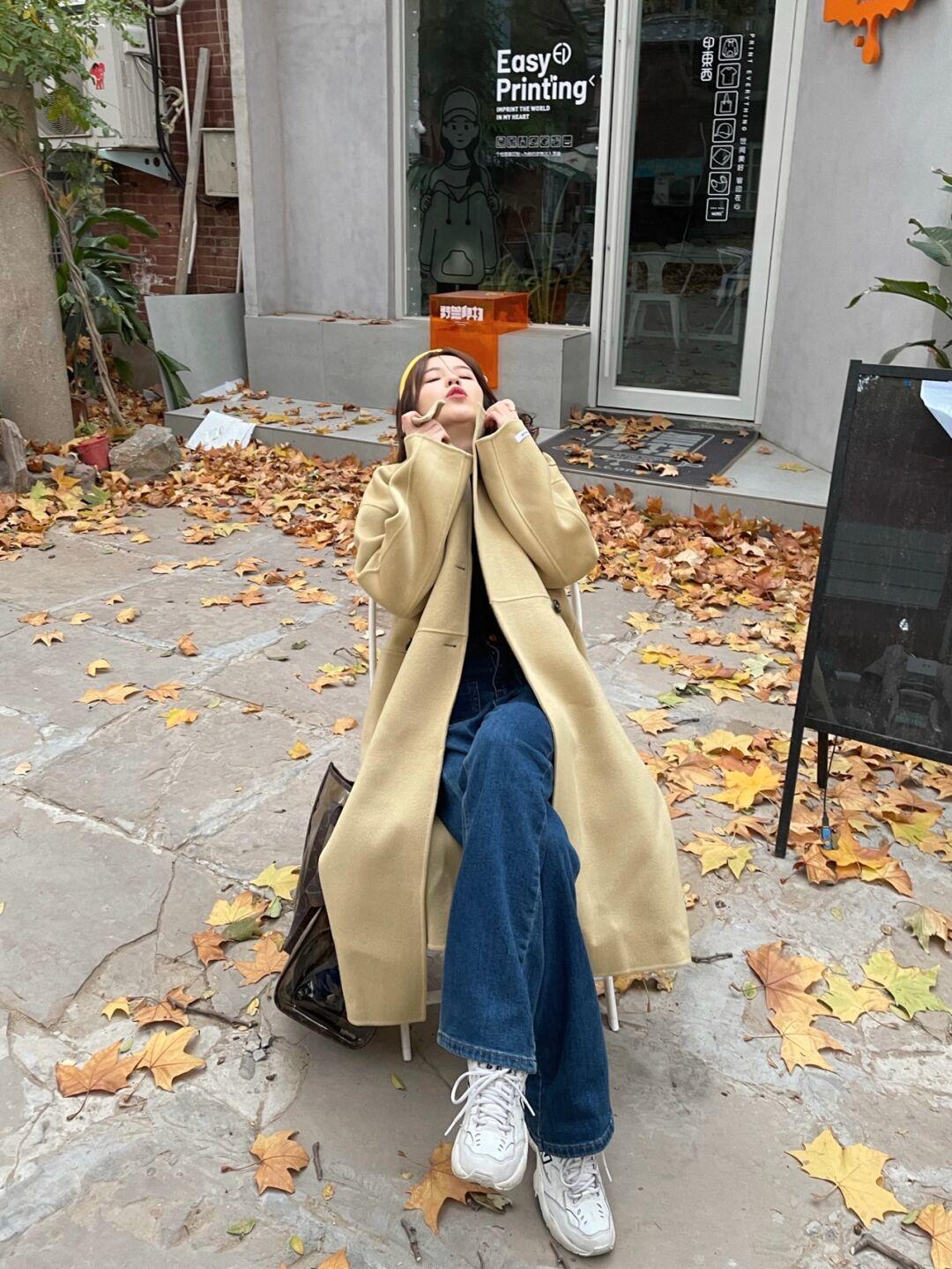 接下来为你介绍的是一款鹅黄色的大衣,如果屏幕前的你比较年轻,觉得大地色偏成熟,那么鹅黄色会更适合你,它属于浅色调中的一种,非常温柔大气,会把你的肤色映衬的更白皙,并展现出十分饱满的精气神。