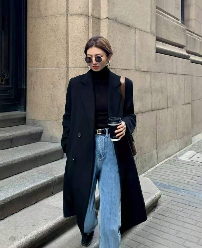 说到深色系,就不得不提到黑色。黑色作为深色系经典色,具有永不过时、百搭耐看、遮肉显瘦三大显著优势,穿衣功底薄弱,身材不完美的女生,都可以试试黑色大衣,保证可以穿出你想要的效果。