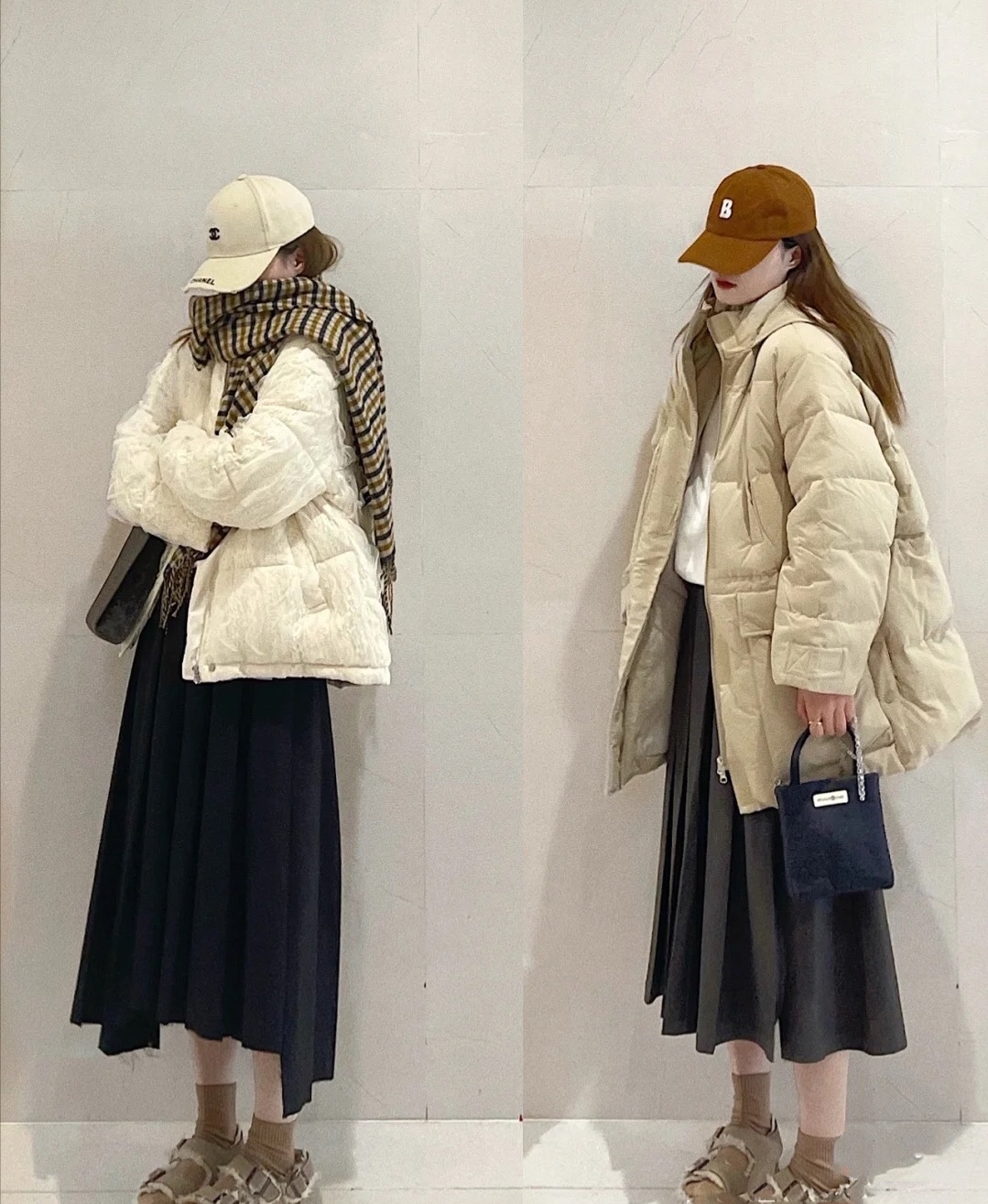 显瘦效果最优越的要数高腰A字裙,臀大、胯大、腿粗这些短板统统帮你遮住。这条又是褶褶丰富的百褶半身裙,而且采用了垂感十足的面料,利落显瘦,又带些小女生的俏皮活泼,让冬季穿搭更时尚。穿羽绒服总是臃肿显胖?教你实用穿搭干货,出门有温度又有风度!