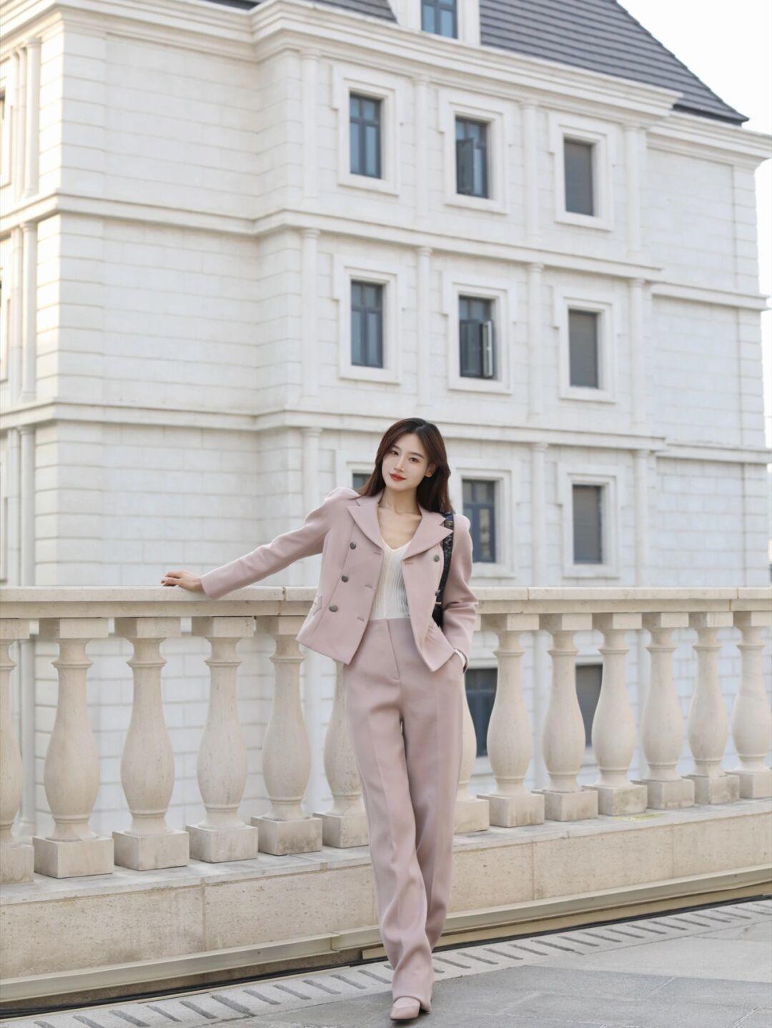 第二款:藕粉色西装套装