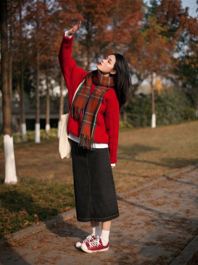 选择一款打底衫搭配高腰半身裙,既显高又利落,修饰身材曲线的效果极佳,在此基础上想要穿出更保暖的效果,可以叠加一款毛衣开衫,看起来会更大方得体。