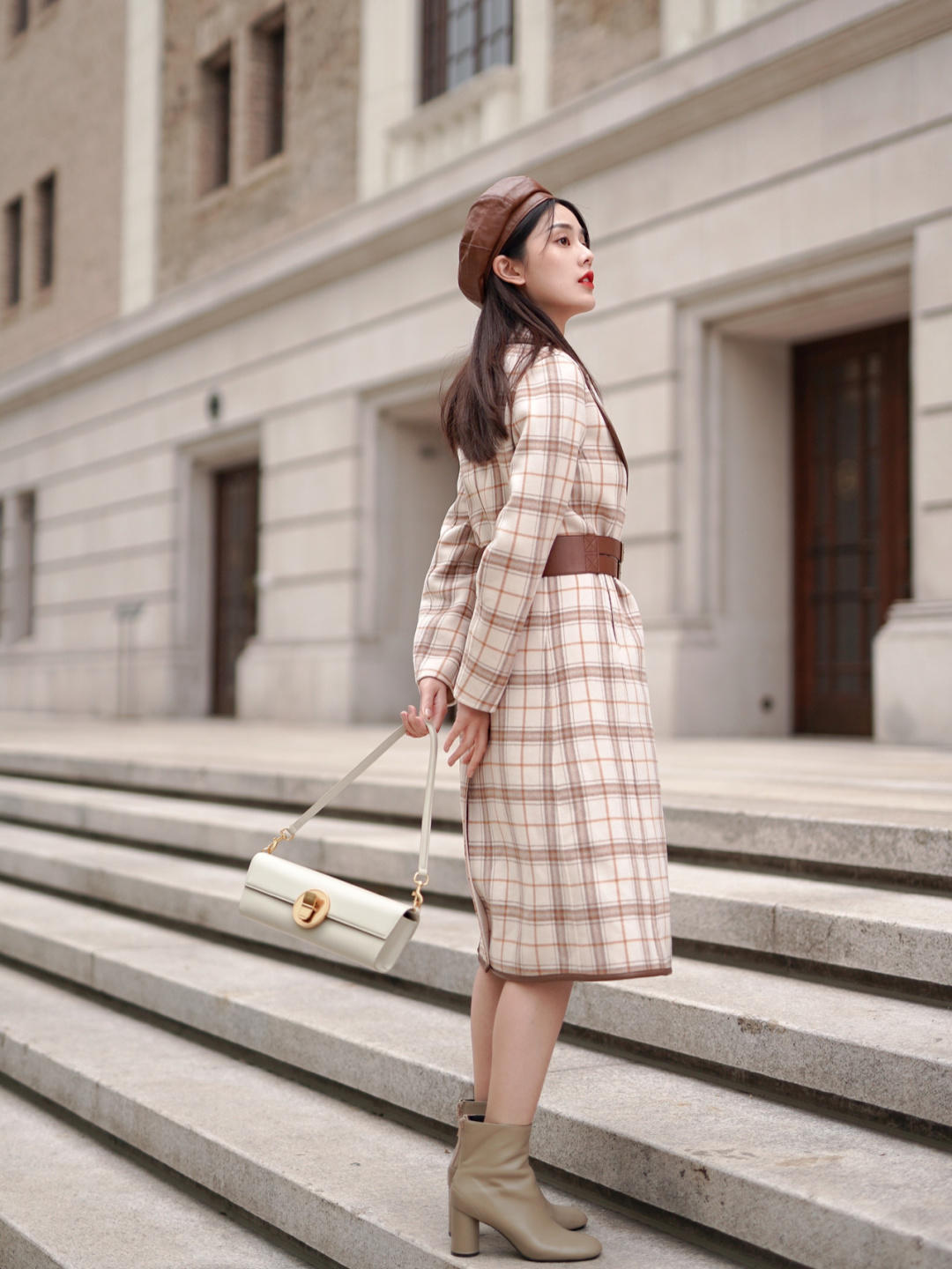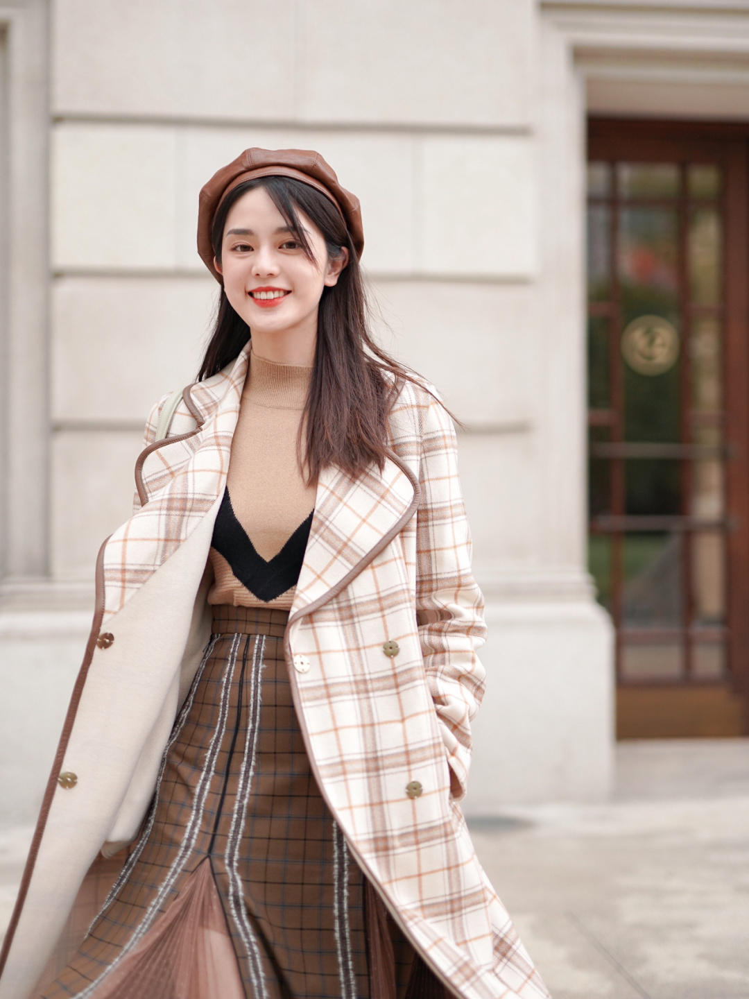 最后为你介绍的是一件白色与棕色结合的格纹大衣,这两个颜色本身就是经典中的经典,以白色为主只会给人很清爽大气的感觉,不会有厚重感,还会注入几分有迹可循的美。