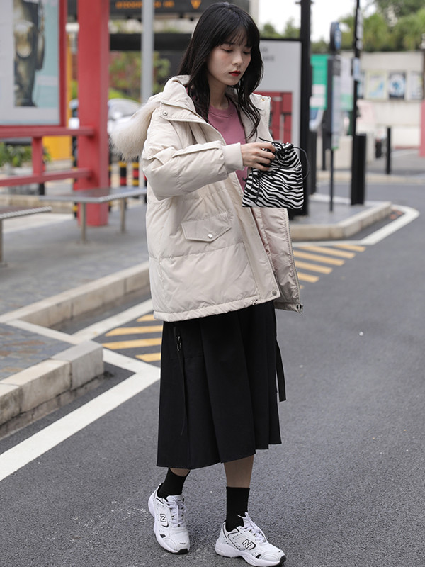 对于小个子而言,短款白色羽绒服简单且好驾驭。并且,不容易出现视觉膨胀感,更是能轻松彰显女性的好身段和高级魅力啦。