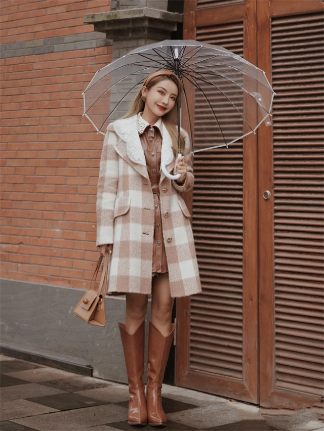 搭配的款式不要有太多细节的设计,如果靴子上有花纹,那么,和靴子最接近的单品要选择纯色款式。