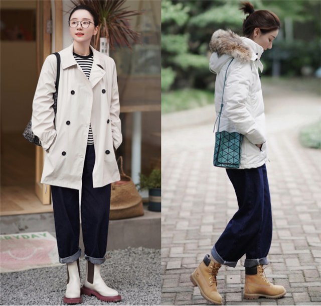 下半身微胖的美眉在选择裤子和鞋子的时候都可以优先考虑深色,黑色和棕色都是更常见的,显瘦效果也会比其它的颜色更好哦。