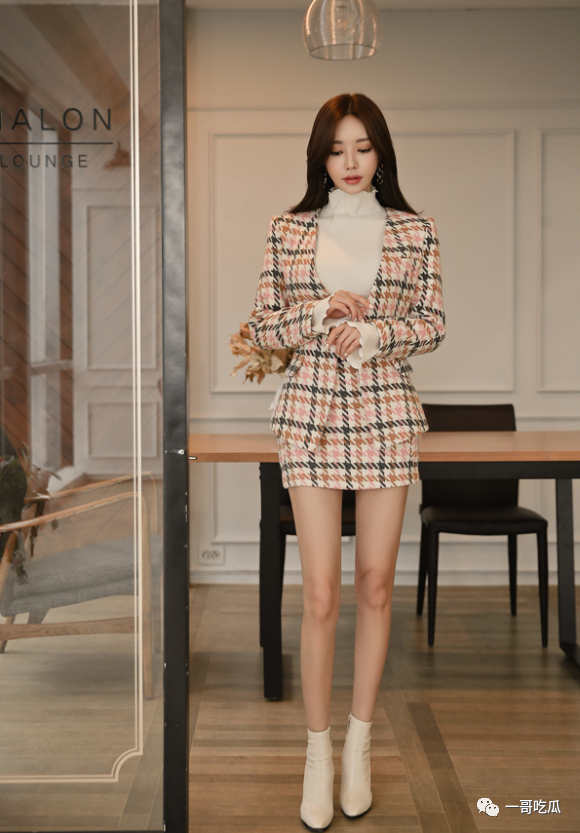 孙允珠ol职业裙装 孙允珠亚麻格纹西装+细高跟 长腿翘臀让人发硬(3)