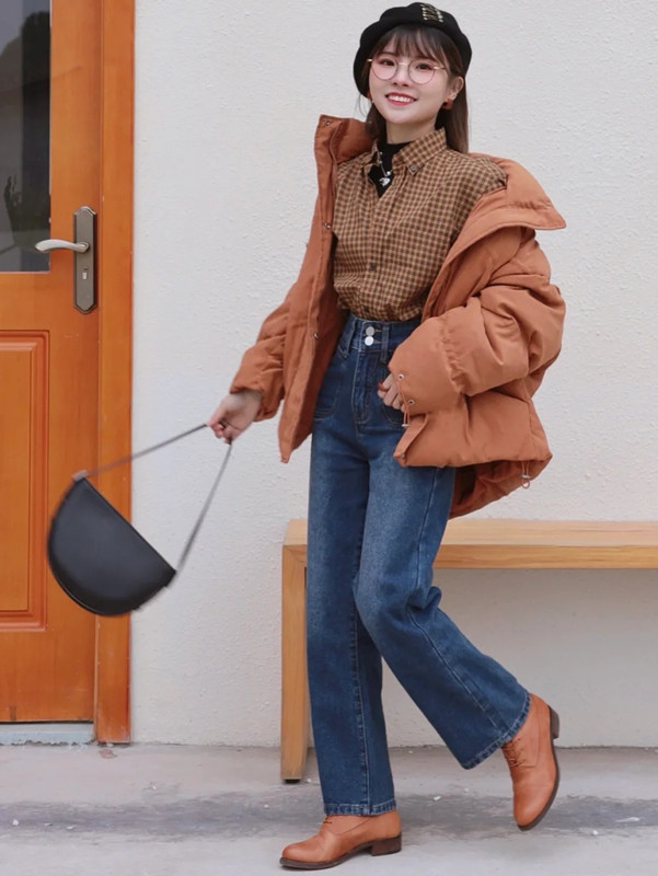 内搭的衬衫可以选择格纹款式,外面叠穿上简单的纯色羽绒服,刚好满足“繁简结合”的搭配方式,使得自身的造型更为更为时尚和高级。