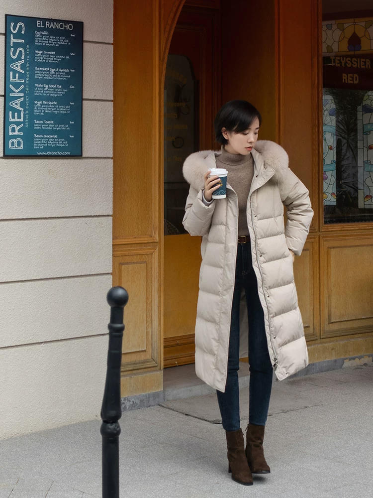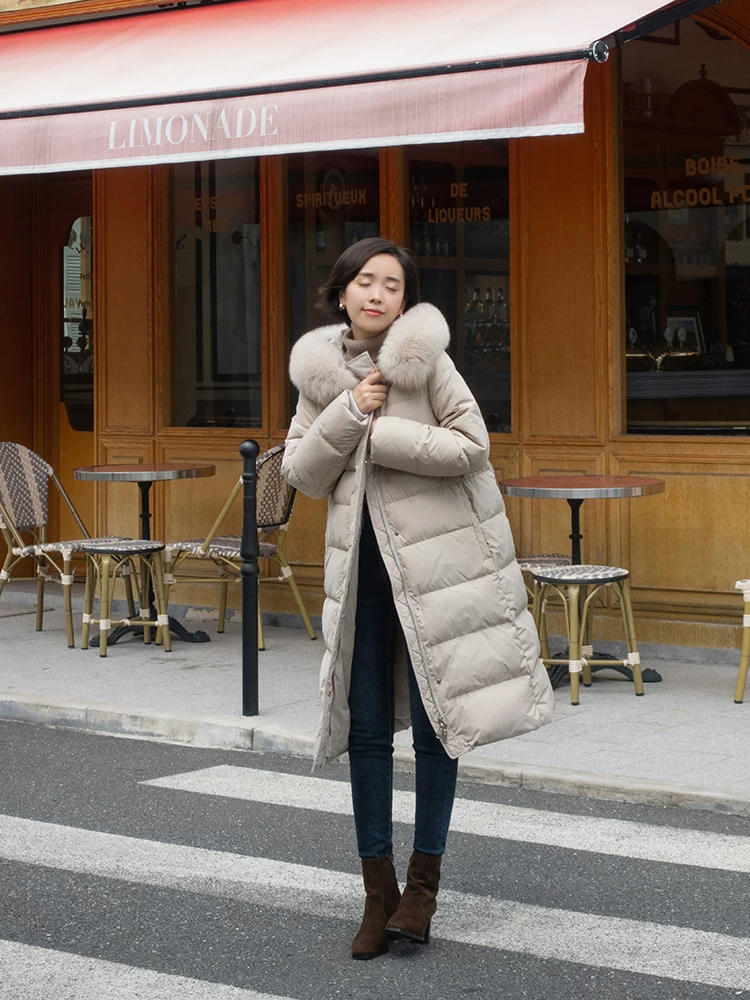 接下来为你介绍的就是值得深冬入手的长款羽绒服了,它的长度到小腿,几乎能遮住大半部分身材曲线,实用性非常强,会修饰好身材、挡风保暖,还会注入优雅女人味,烟灰色浅淡温柔,与蓝色相似,清冷味十足。