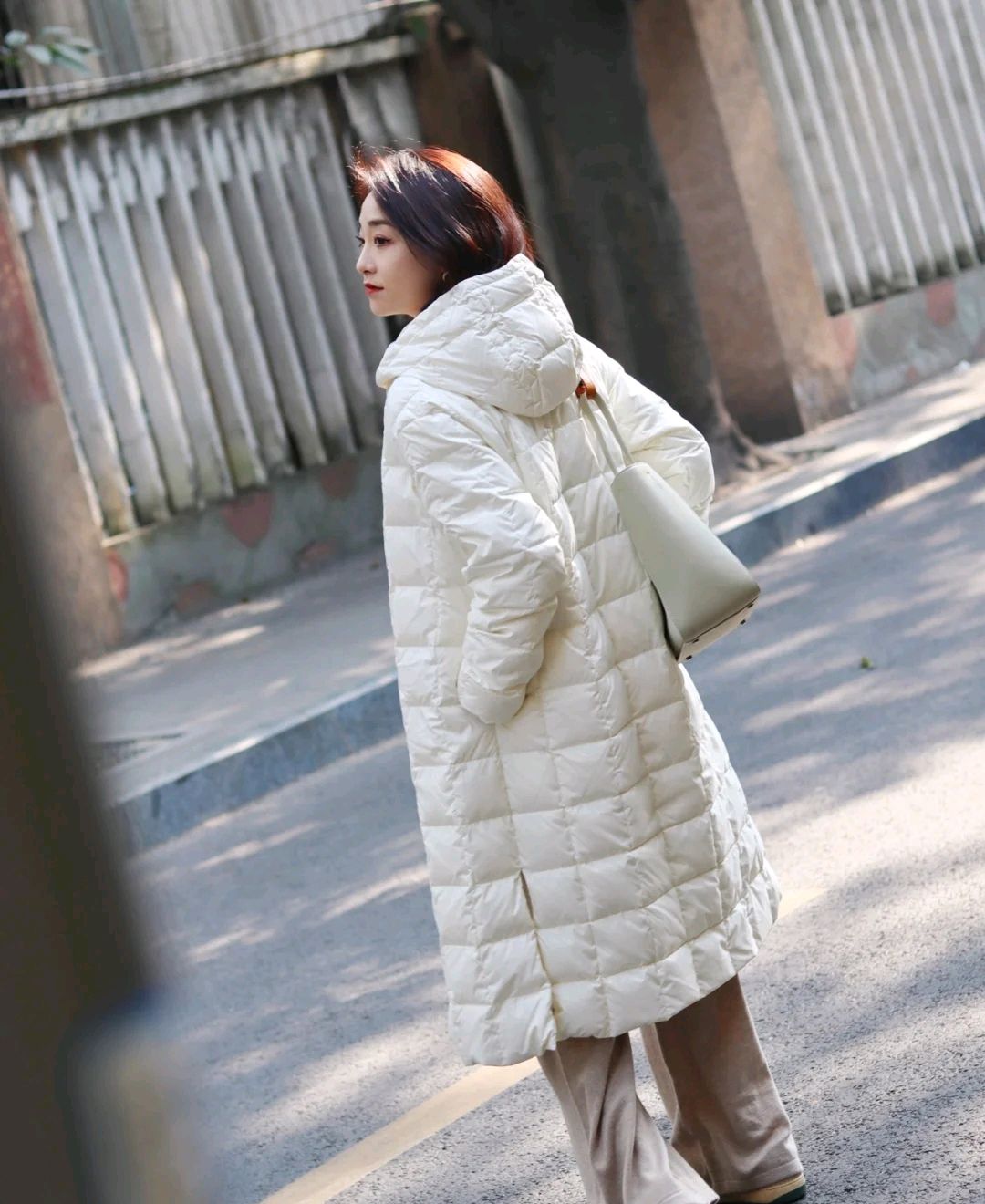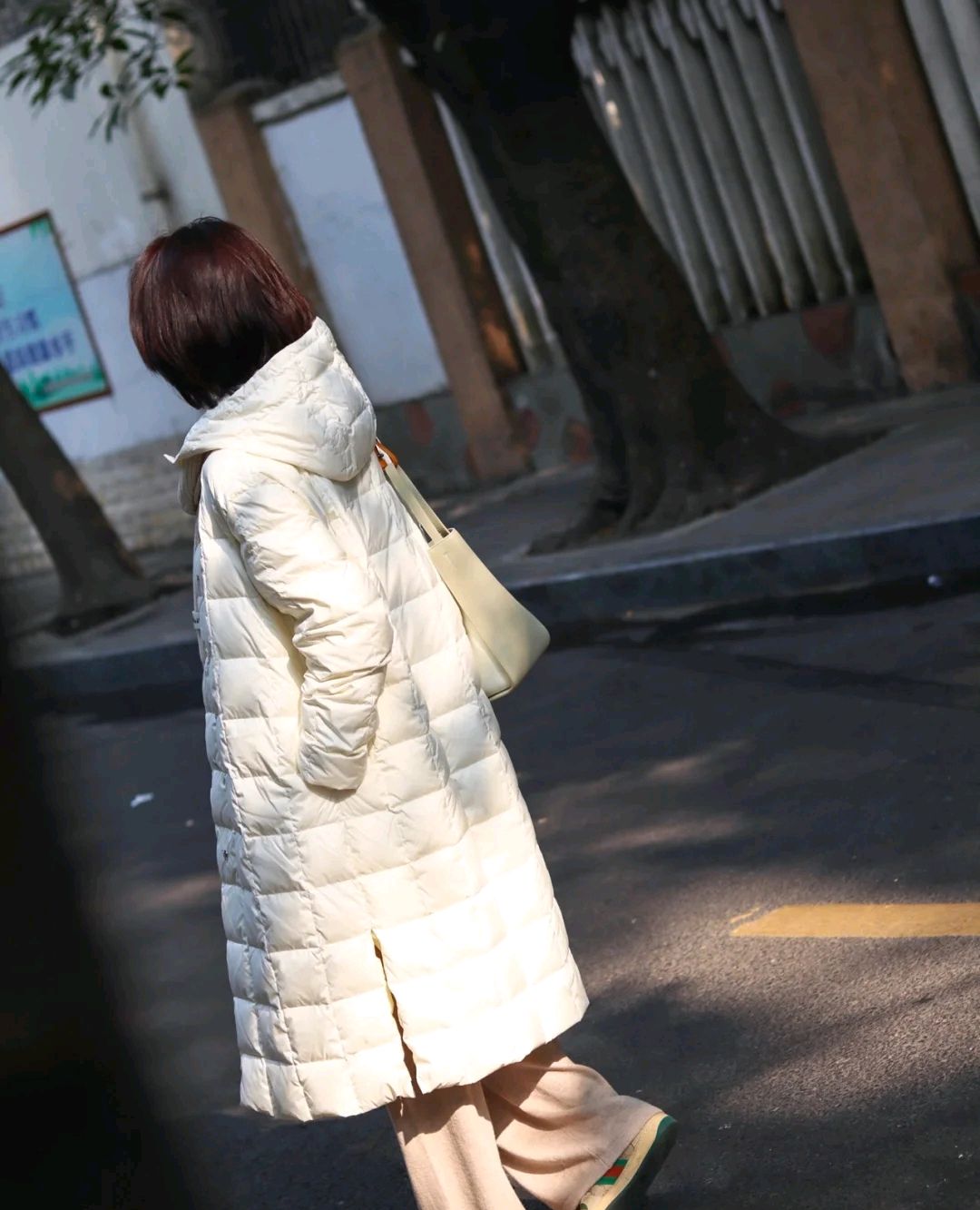 这位时尚博主所穿的这套服装就很值得女生们细细品味,她选择了米白色长款羽绒服搭配浅灰色直筒裤,穿出来的视觉效果虽然简简单单,但是却很精致也很温柔。