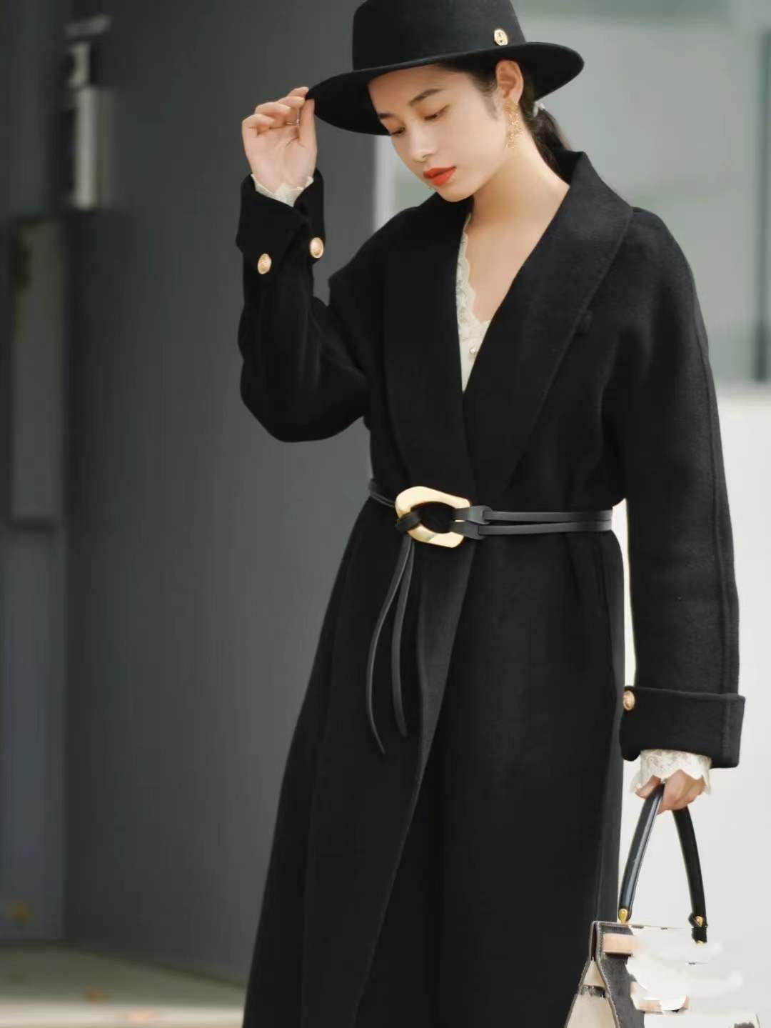 浴袍风格的黑色大衣,慵懒中带了几分帅气。 既有帅酷的张扬,又有慵懒的柔情。你想要的风格,可以更加自由地切换。宽松慵懒的浴袍风大衣,有着更强的包容度。上身微胖,或者臀部线条粗壮的女性,只要一条腰带,就能勾勒出曼妙的身姿。