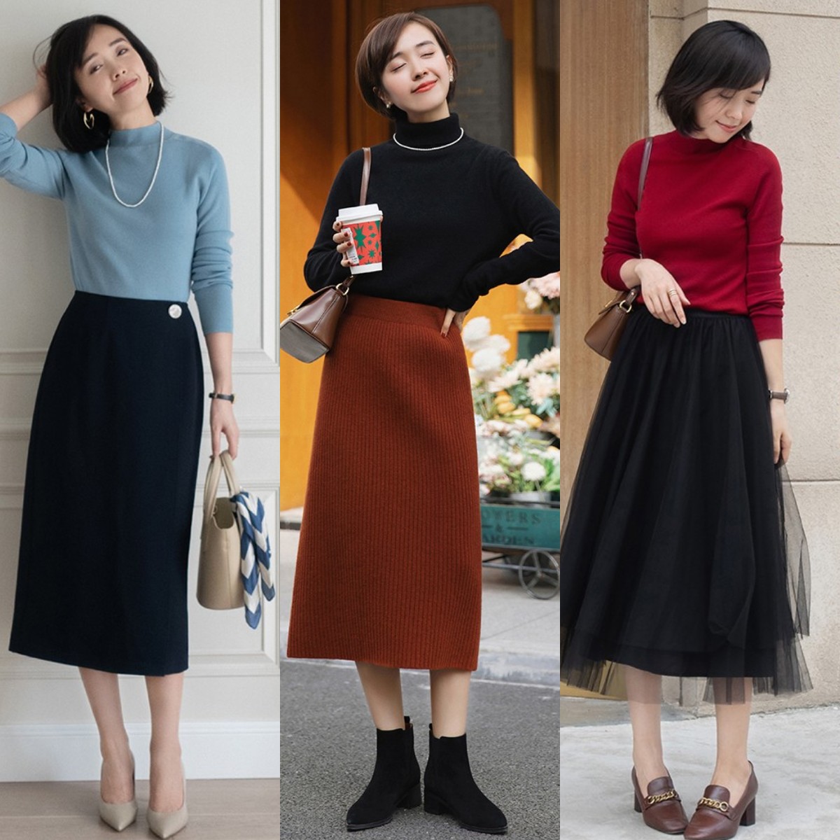 毛衣配半身裙怎么搭配好看?牢记“拉高腰线”的原则 穿出优越比例!(4)