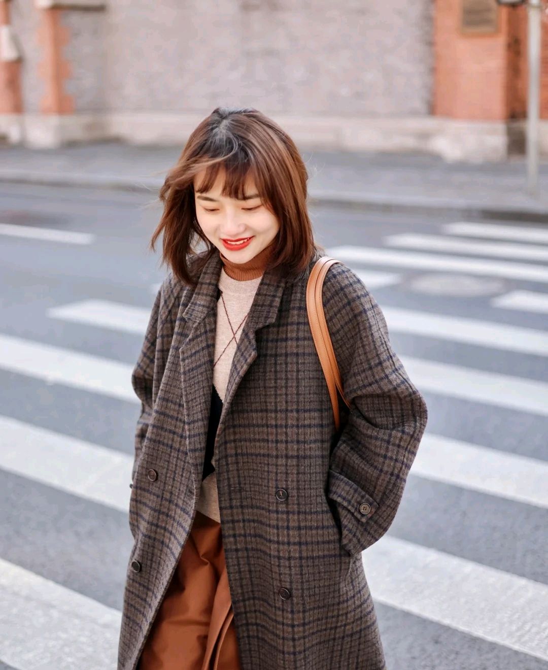融入格纹元素的大衣穿搭显得很经典,不会出错也不会觉得单调,而且很好搭配。