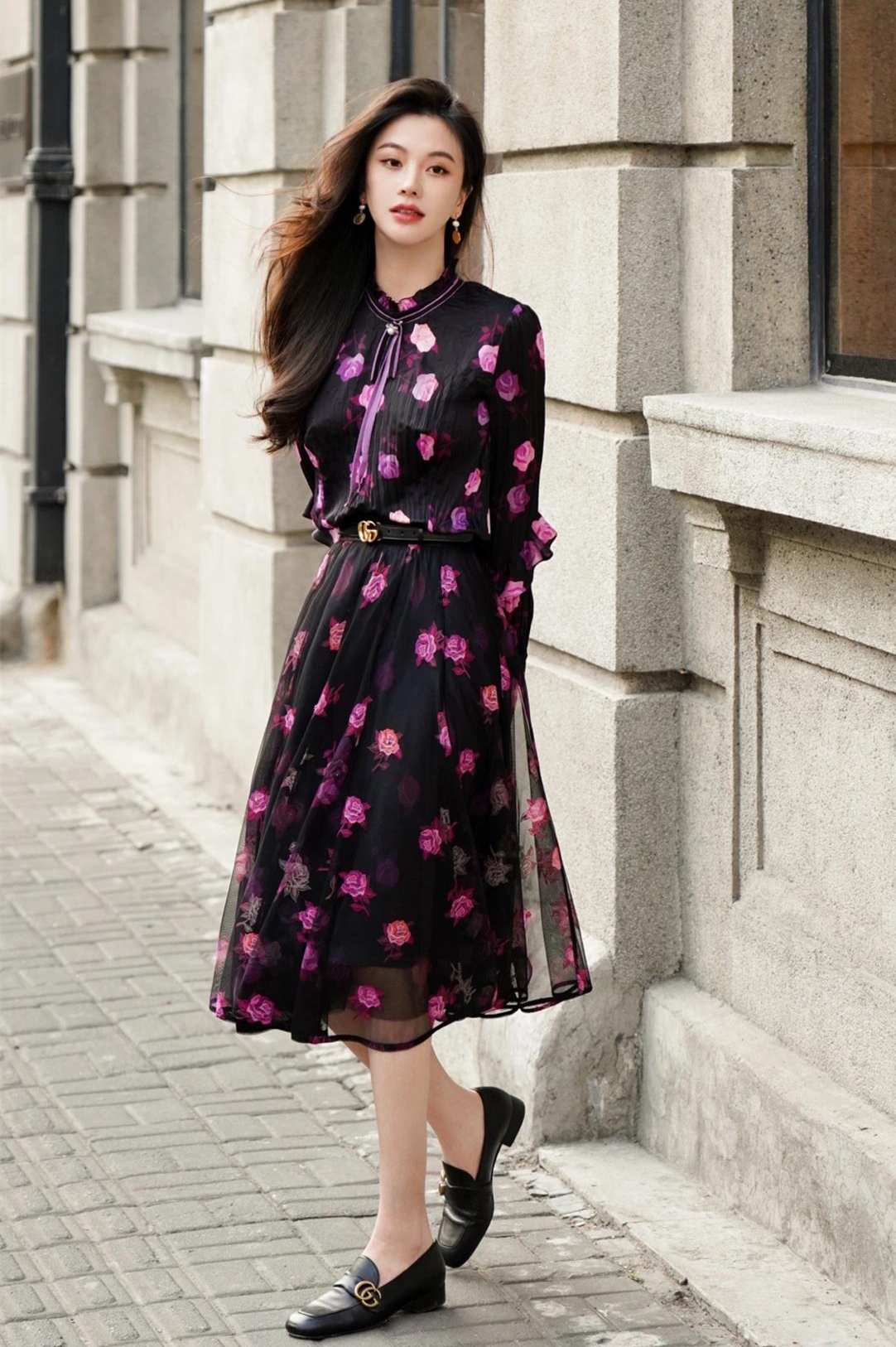 像下图中的这种印花间距较大的款式,就很适合30岁以上的女性入手,但若是你的年龄在25~30岁之间,那就比较推荐你尝试小碎花衬衣,看起来会更加清新养眼。