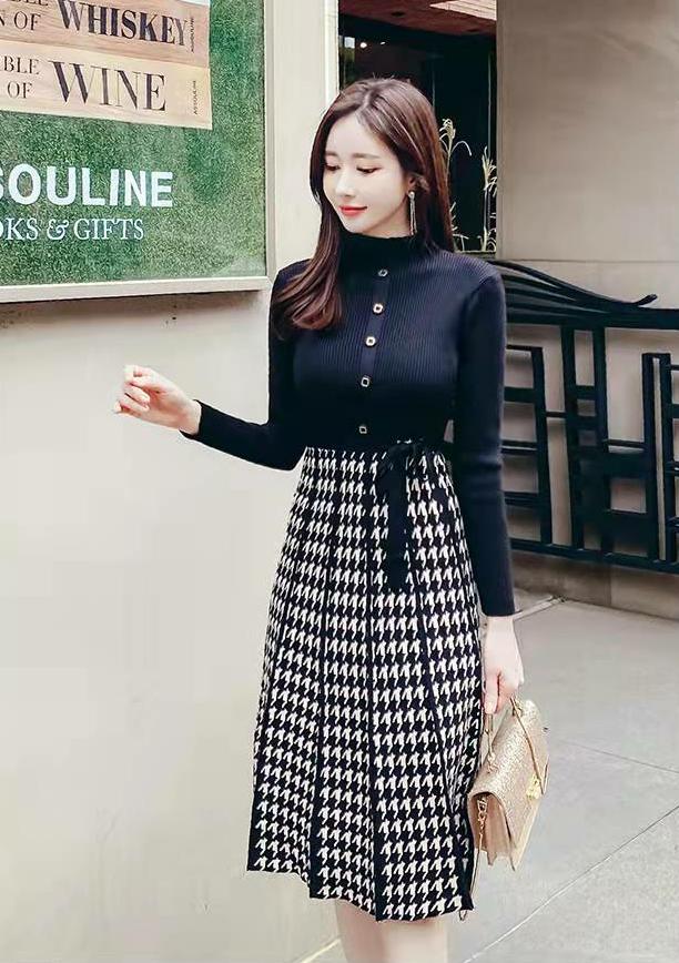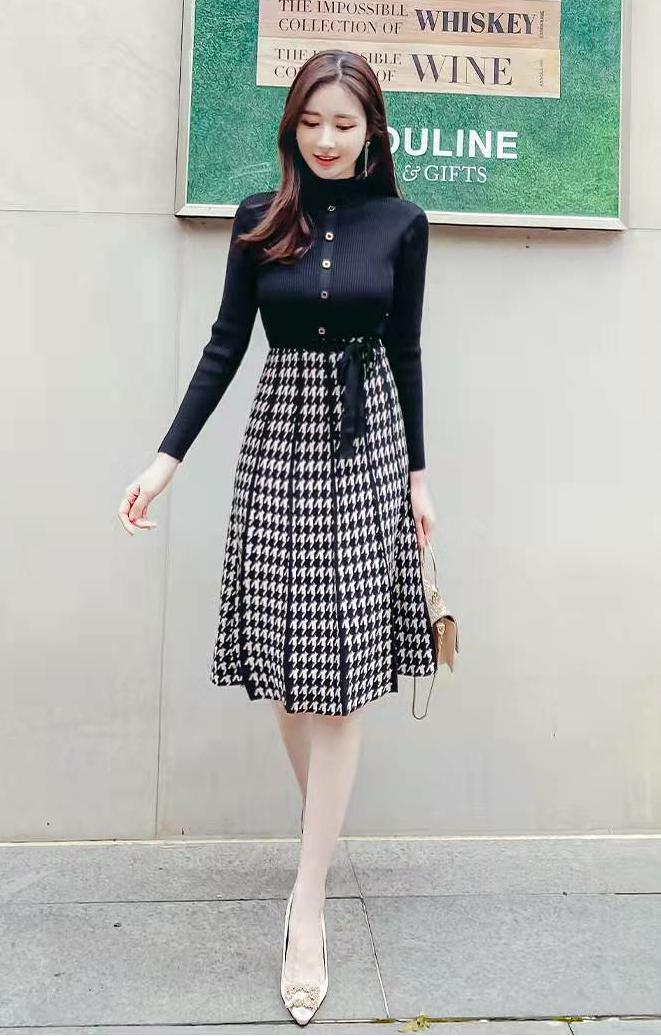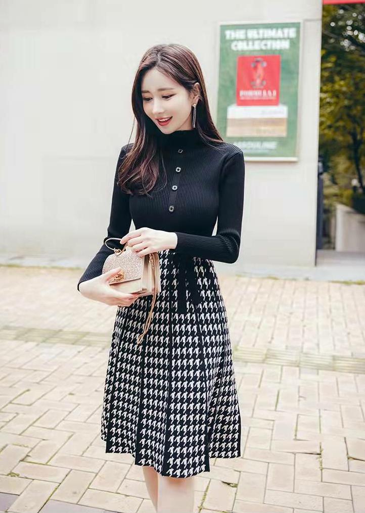 秋冬季穿搭黑色长袖针织裙,既保暖又时尚,简单大气。针织面料的服装,透气,舒适,受到很多女性朋友的青睐,穿搭针织裙,绝对给你优雅大方的美感。因为弹性面料,所以着装上身会更加凸显纤细的身材,而且展现女性清新精致的时尚感。
