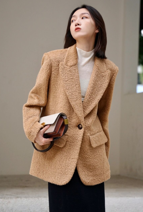 西装肯定是现在这个季节必备的单品,就像下面的博主选择了一件宽松的西装外套。简单时髦,然后纽扣扣起来,这样就能塑造出腰身了,看上去并不臃肿,再搭配白色的打底衫,也会显得很有层次。