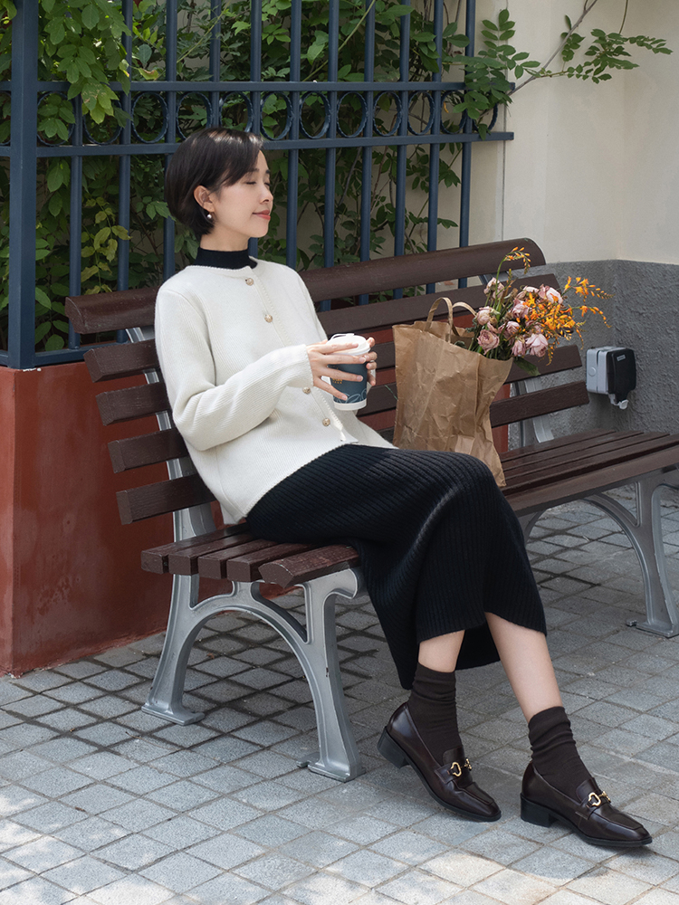黑色的针织裙搭配起来也是很优雅的,当它和白色衬衫叠穿起来时,毫不费力就会显得更有层次。黑白配属于经典,春天穿再合适不过啦。如果你怕冷,搭配上短靴吧,增高还显瘦,保暖效果也到位。