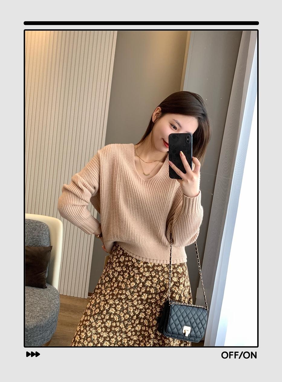 V领针织衫视觉上能显脸小,这个点真的太爱了,再戴上心爱的项链点缀,整个人都变得精致起来。
