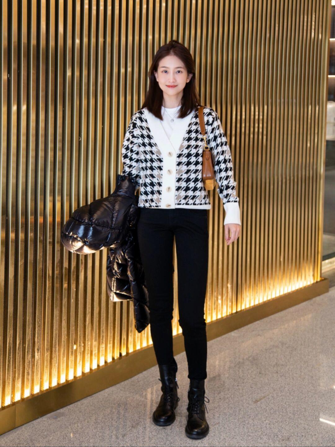 千鸟格的设计融合在外套里面,使得整套造型元素感更强。其实大家平时穿衣服的时候,就可以挑选自己喜欢的元素,让造型更具有亮点,不会显得太过平淡乏味。