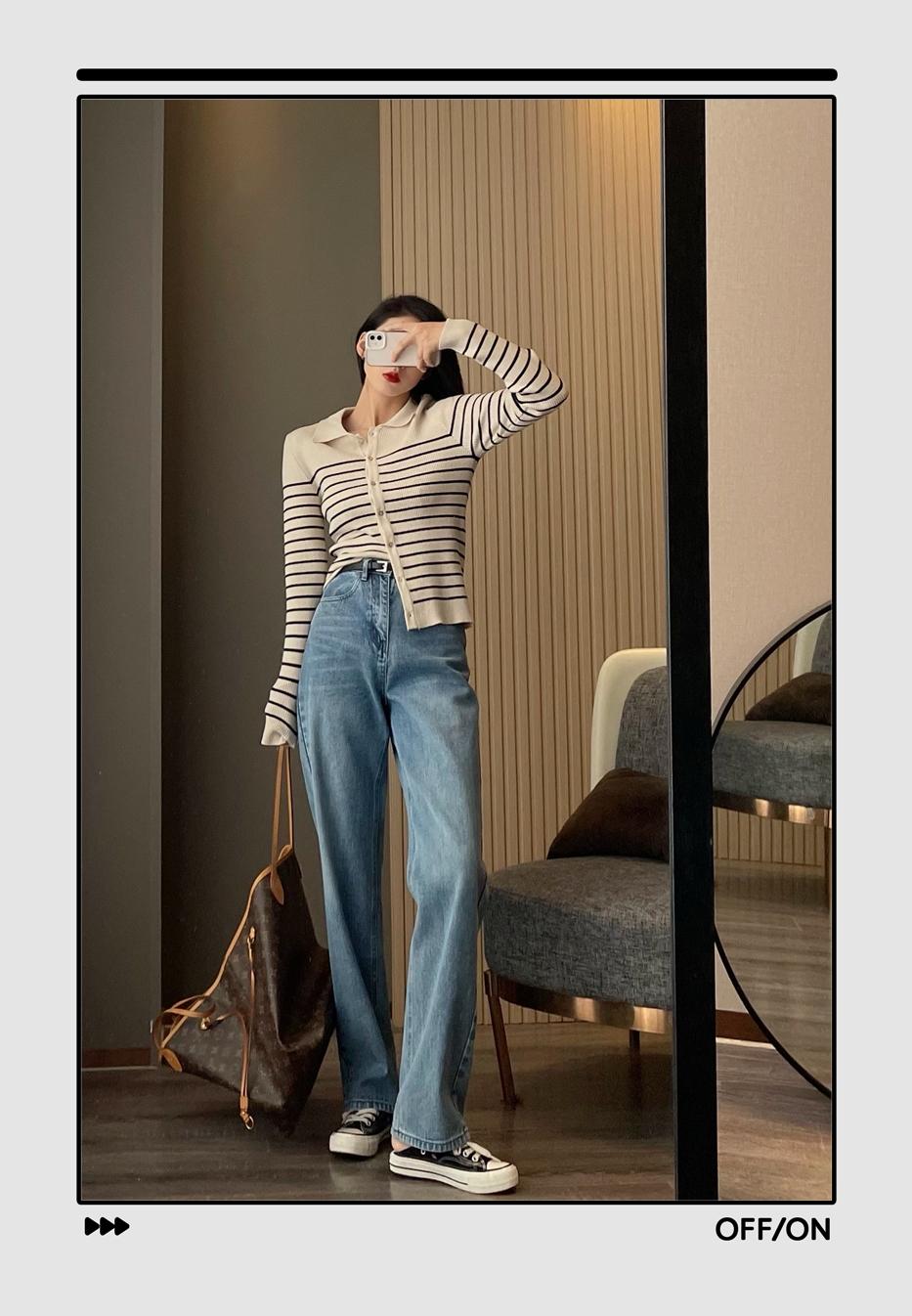 针织开衫与高腰牛仔裤的组合,可以帮你搭出好的身材比例,而帆布鞋能给你休闲舒适。