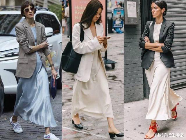但是缎面裙却大有不同,是性感和柔美的一种代表,打造出来的风格应该是非常有女人味儿的,所以整体与西装的感觉是不一样的。