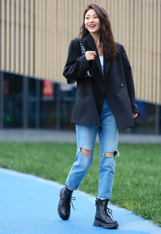 首先要推荐的就是一直都很火的马丁靴,马丁靴的款式大气,风格酷飒,对于酷女孩来说也是值得借鉴的,并且马丁靴的款式很多,下面的黑色马丁靴也是基础款,自带酷酷的气质,搭配西装和牛仔裤还是蛮个性的。