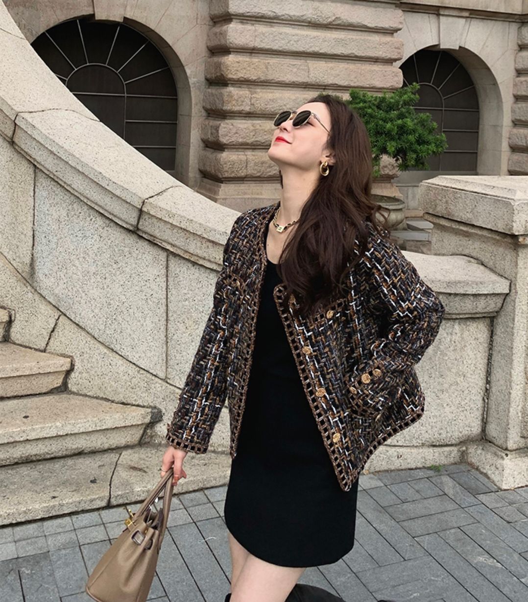 1.小香风外套的选择,也是要非常注重细节的,尤其是做工工艺是否精细,决定了一件单品是否有档次。