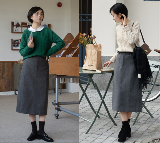 另外,针织衫和半身裙也是非常合拍的搭档,因为没有人能够拒绝裙装,尤其是成熟女性,她们通常都会用这些具备女人味的服饰来凹造型,而半身裙的穿搭就特别优雅,并且能够规避拖沓感和老气感,让你的整体穿搭更有魅力,长度最好要超过膝盖,保证搭配的遮肉效果。