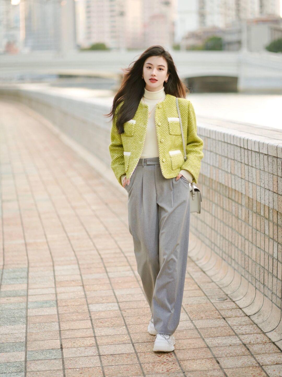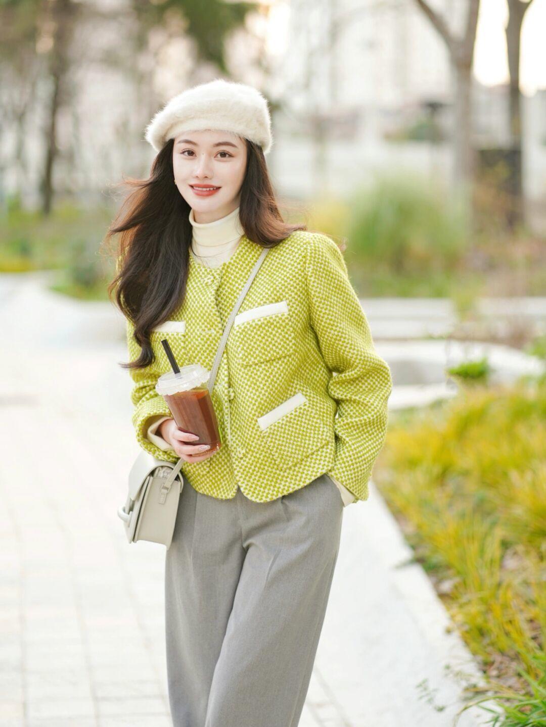 绿色是一个很清新的颜色,适合在早春搭配,特别有氛围感。想让自己更具有小清新的魅力,就可以模仿博主搭配。小香风外套比较偏成熟,但其实它结合各种颜色,穿出来的效果都不一样,不论什么风格的女生都能挑选到适合自己的那一款。