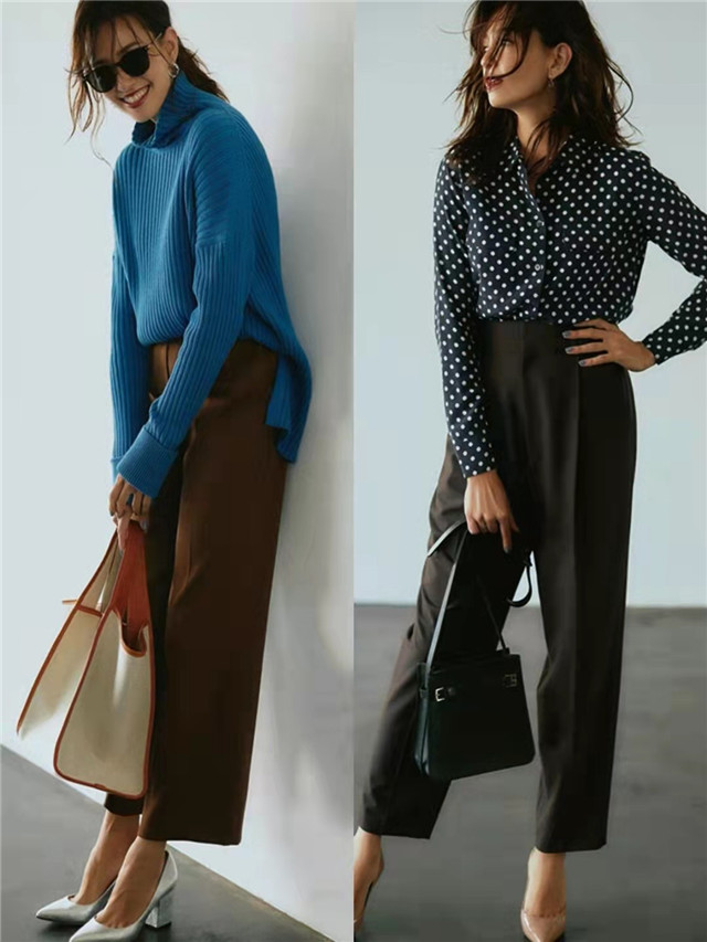 今年流行的裤子太多了,西装裤就是值得借鉴的一款,西装的材质面料都是很高级的,适合普通人,可以大大提升你的气质。而且选择西装裤的时候可以考虑阔腿裤的版型,最大程度地修饰你的比例。