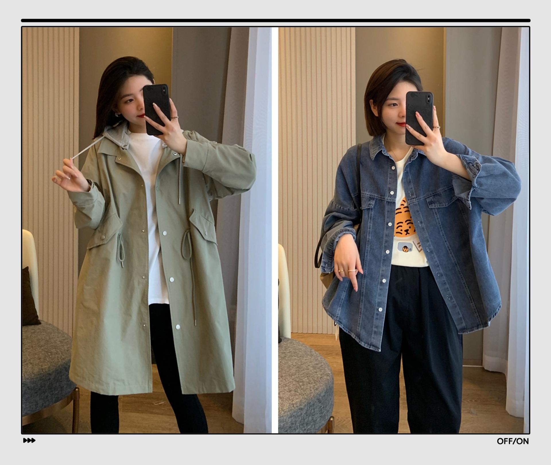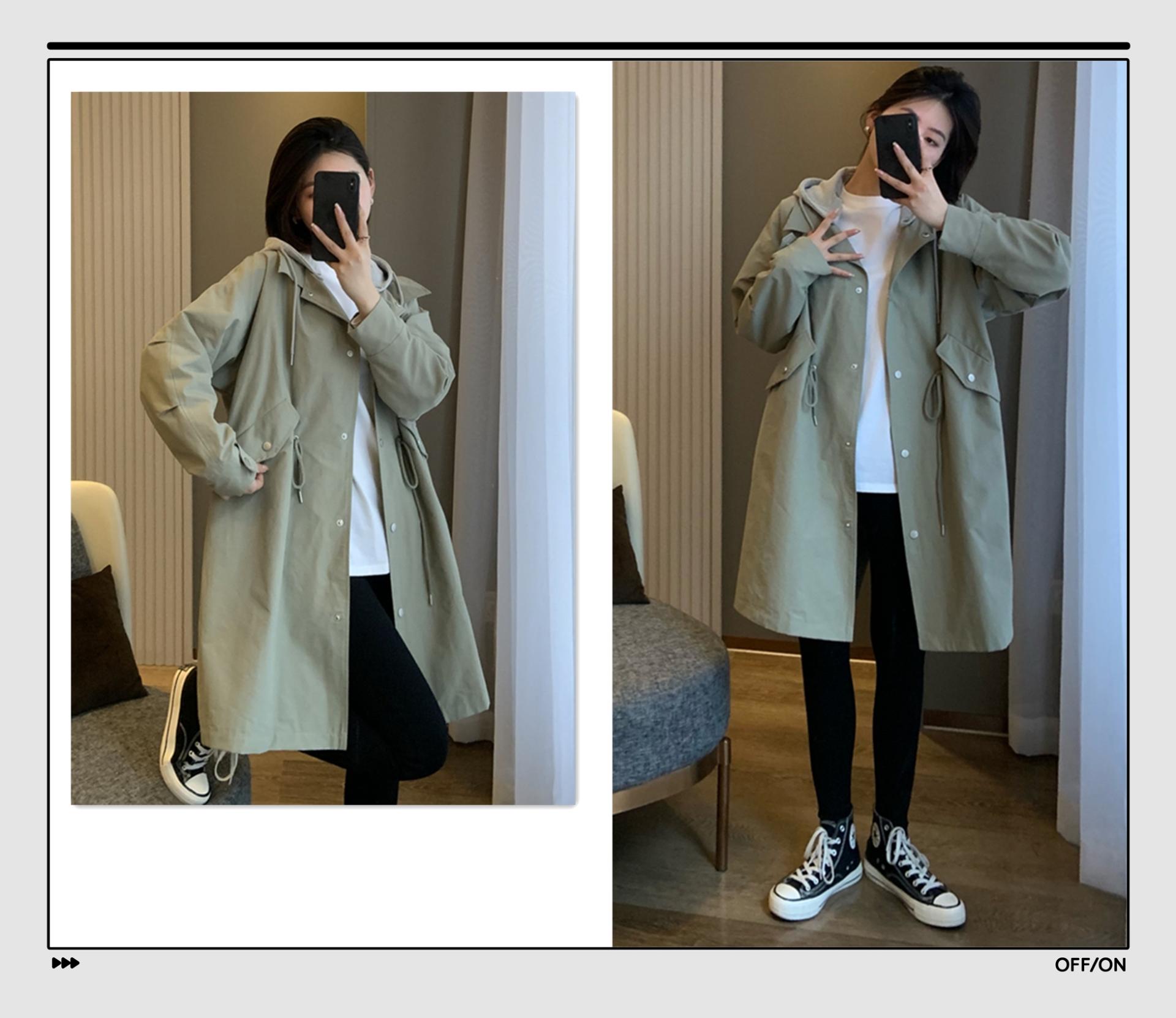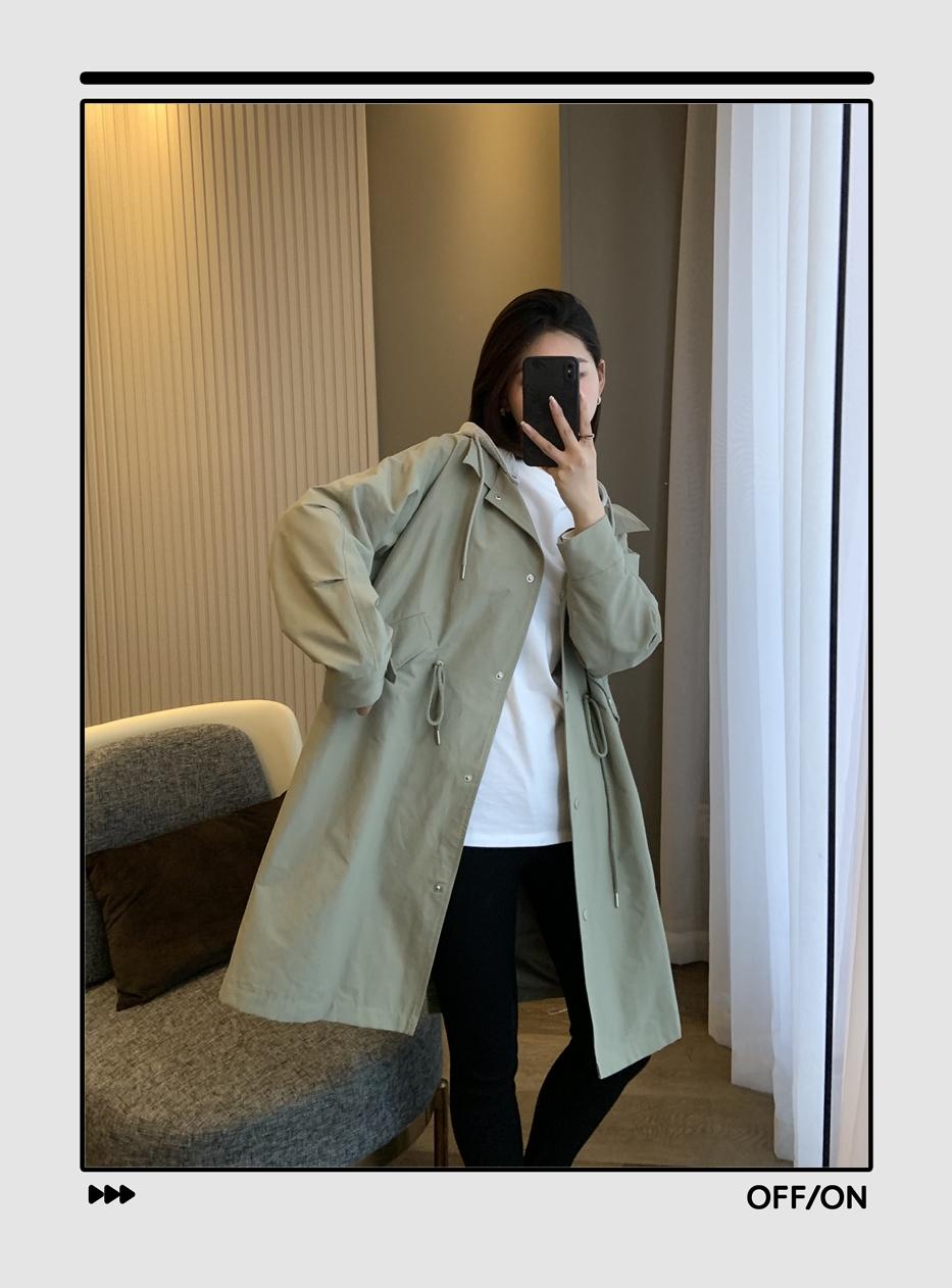 军绿色的工装风衣,有风衣的潇洒气场有连帽的休闲自在。军绿这个颜色其实挺难选内搭的,但是穿白T恤肯定没错。