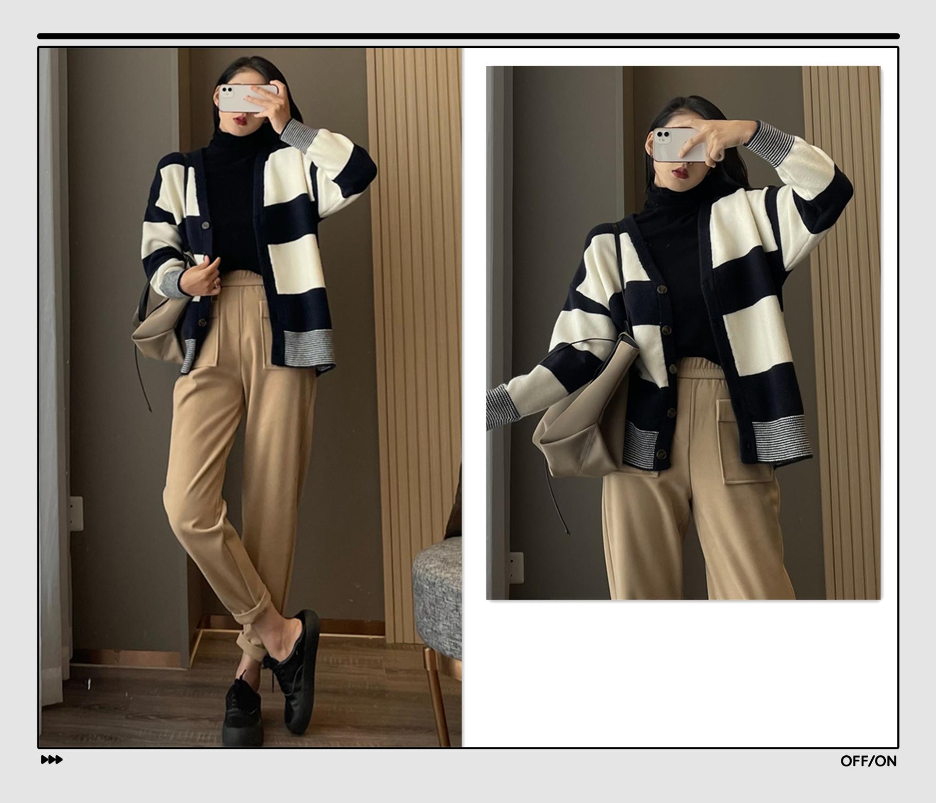 奶奶衫+针织衫的搭配,既温暖又可搭出层次感。下装穿一条卫裤,这个组合非常适合年纪大一点的姐姐。