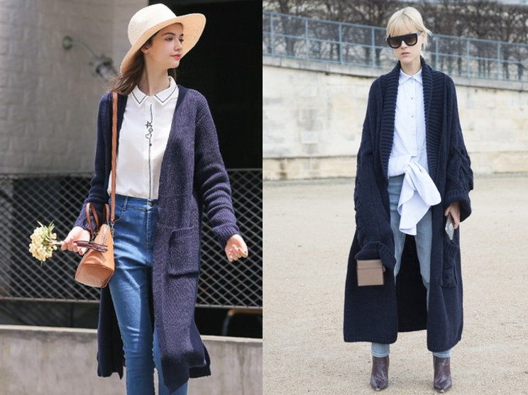 过膝长款针织开衫,内搭白色衬衫牛仔裤,一双尖头靴子,走路自带优雅!