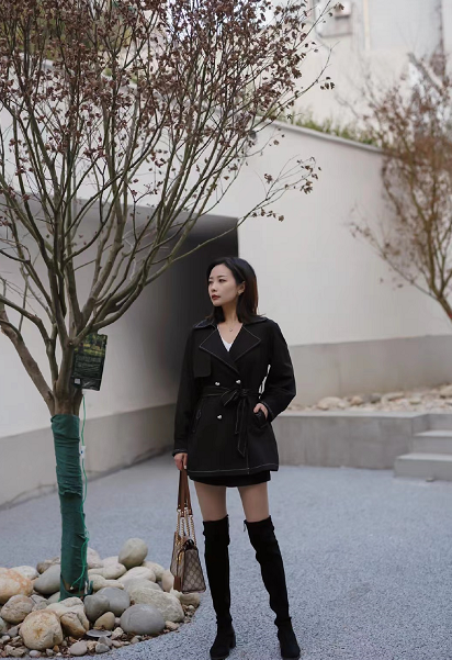从身高方面来讲,小个子更适合短款风衣,不会造成压身高的问题,因此短款风衣搭配长靴的组合,小个子一定要学会。从修饰腿型的角度来讲,长靴能够有效缓解我们小腿粗、腿不直等问题,与不压身高的风衣组合在一起,只会让我们的双腿看上去纤长又迷人,绝对不输长款风衣的时尚魅力。