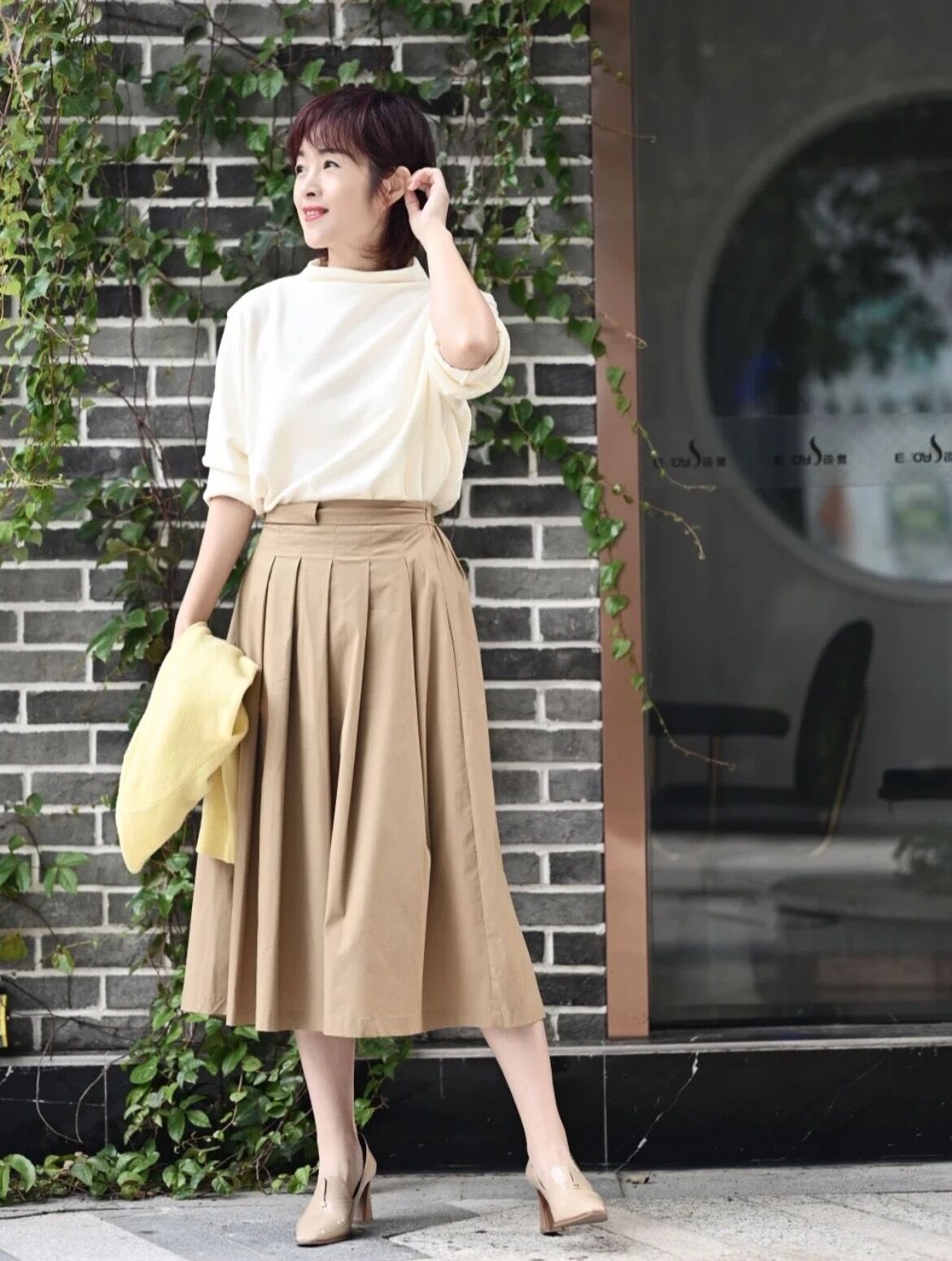 百褶裙也是一个不挑身材、不挑气质的单品,想要将它穿好看,需要拿捏住面料这一细节。纯棉面料大方简约,但容易褶皱;真丝面料温柔风情,很适合成熟女性来穿;那么最适合春季穿的面料,当然是棉质和天丝等材质混纺而成的,自带润玉光泽,又显轻盈灵动,成熟女性穿上减龄又优雅,美到无话可说。