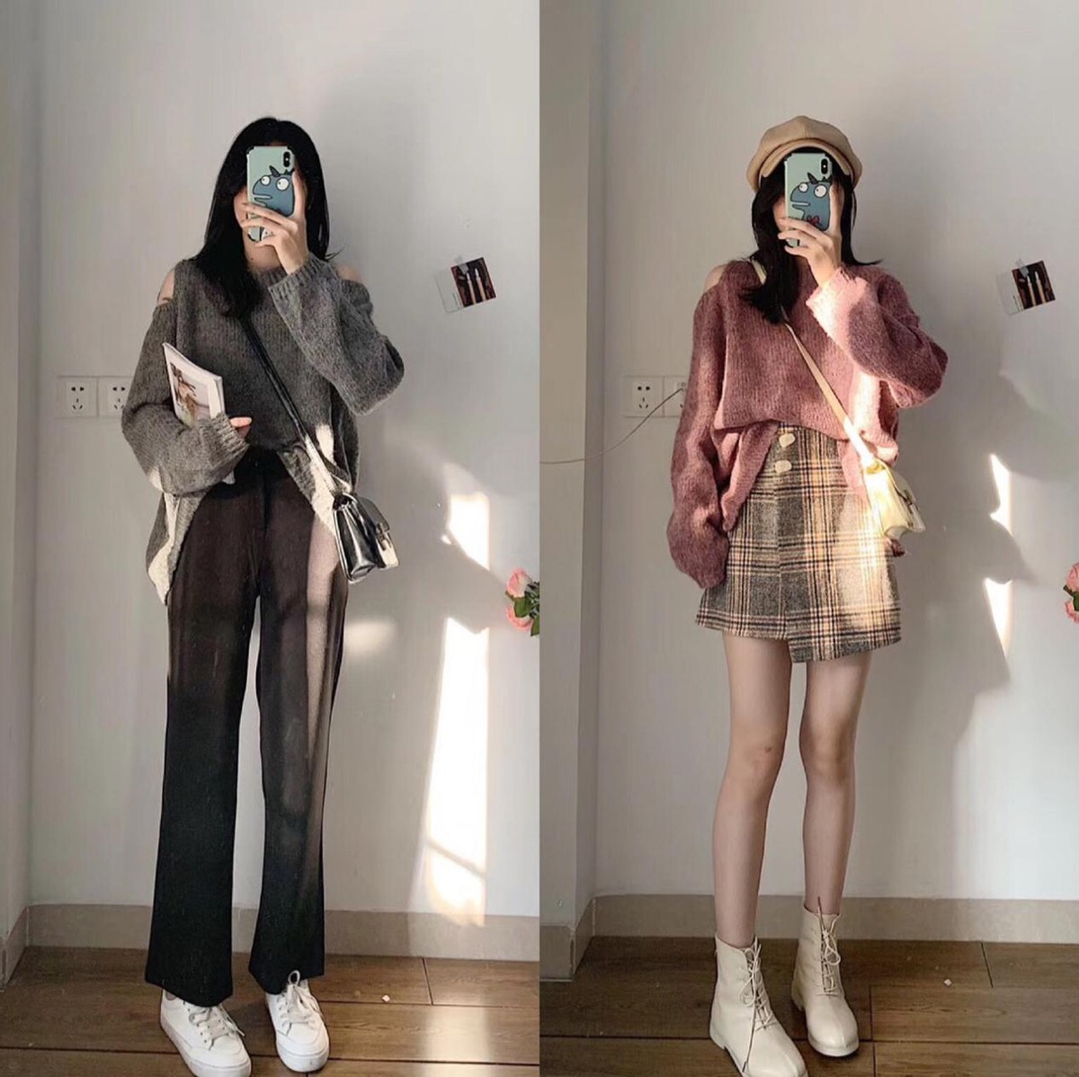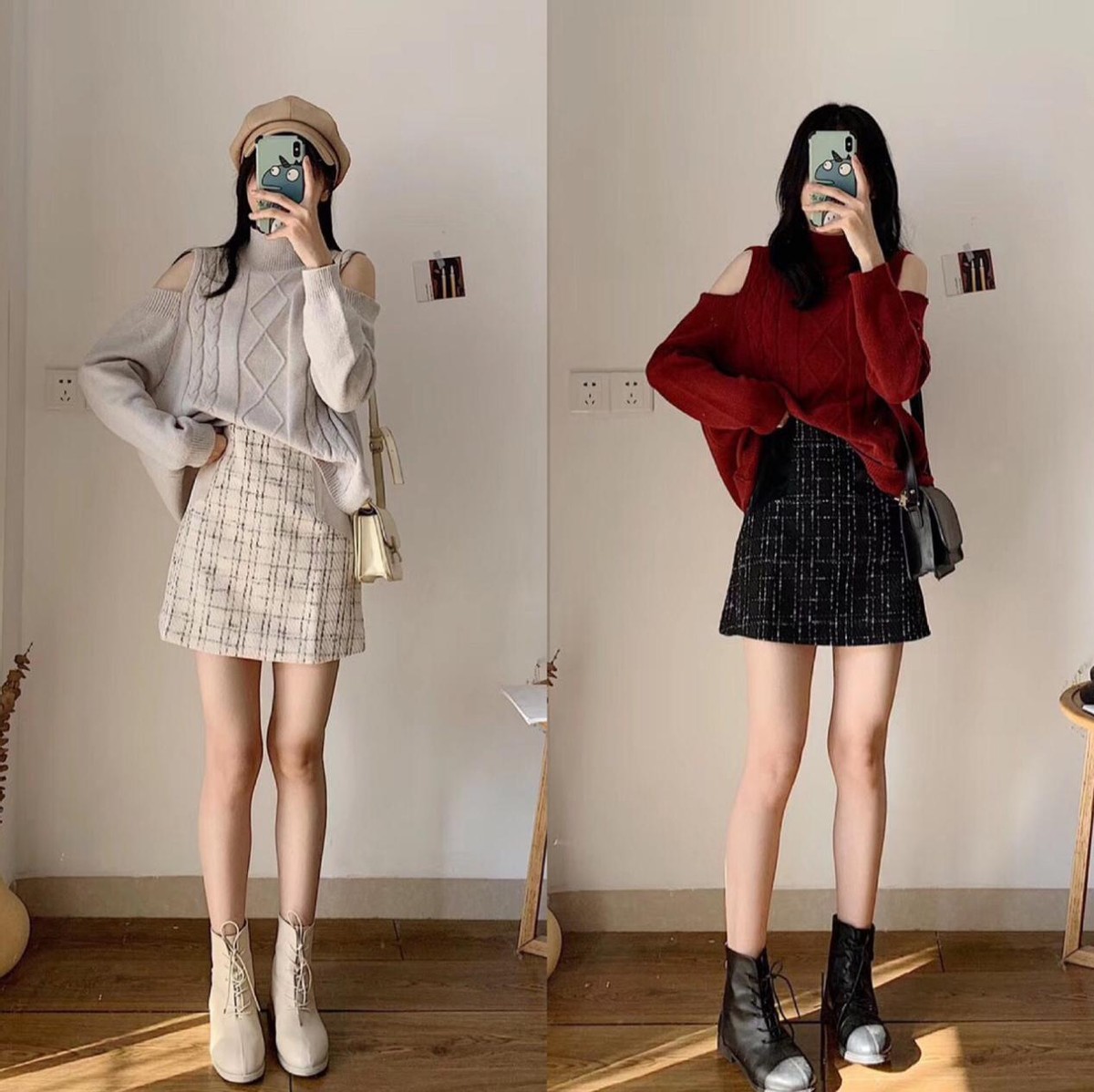 相对于一字肩款式的上衣来讲,挖肩款式的上衣呈现出来的感觉要更加保守一些,这种相对比较个性化的款式设计方式呈现出来的搭配效果会显得更加洋气一些,同时对于肩膀和骨架的要求也不会那么高,下半身搭配简单的高腰短款半身裙,上下身都有重点的同时又不会显得头重脚轻。